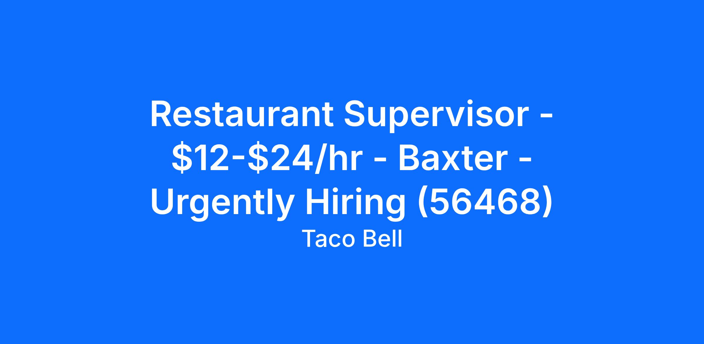 Restaurant Supervisor - $12-$24/hr - Baxter - Urgently Hiring (56468)