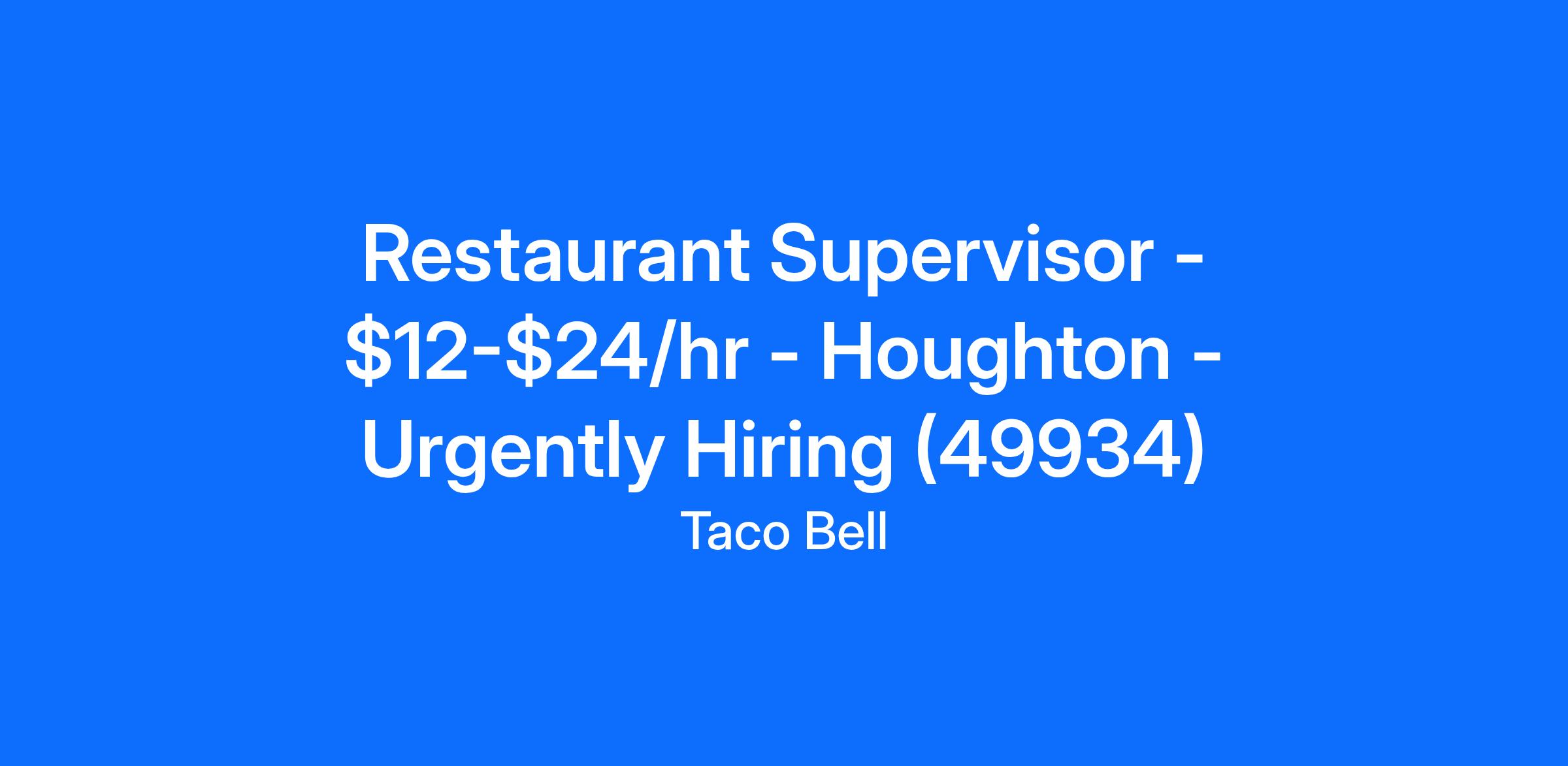 Restaurant Supervisor - $12-$24/hr - Houghton - Urgently Hiring (49934)