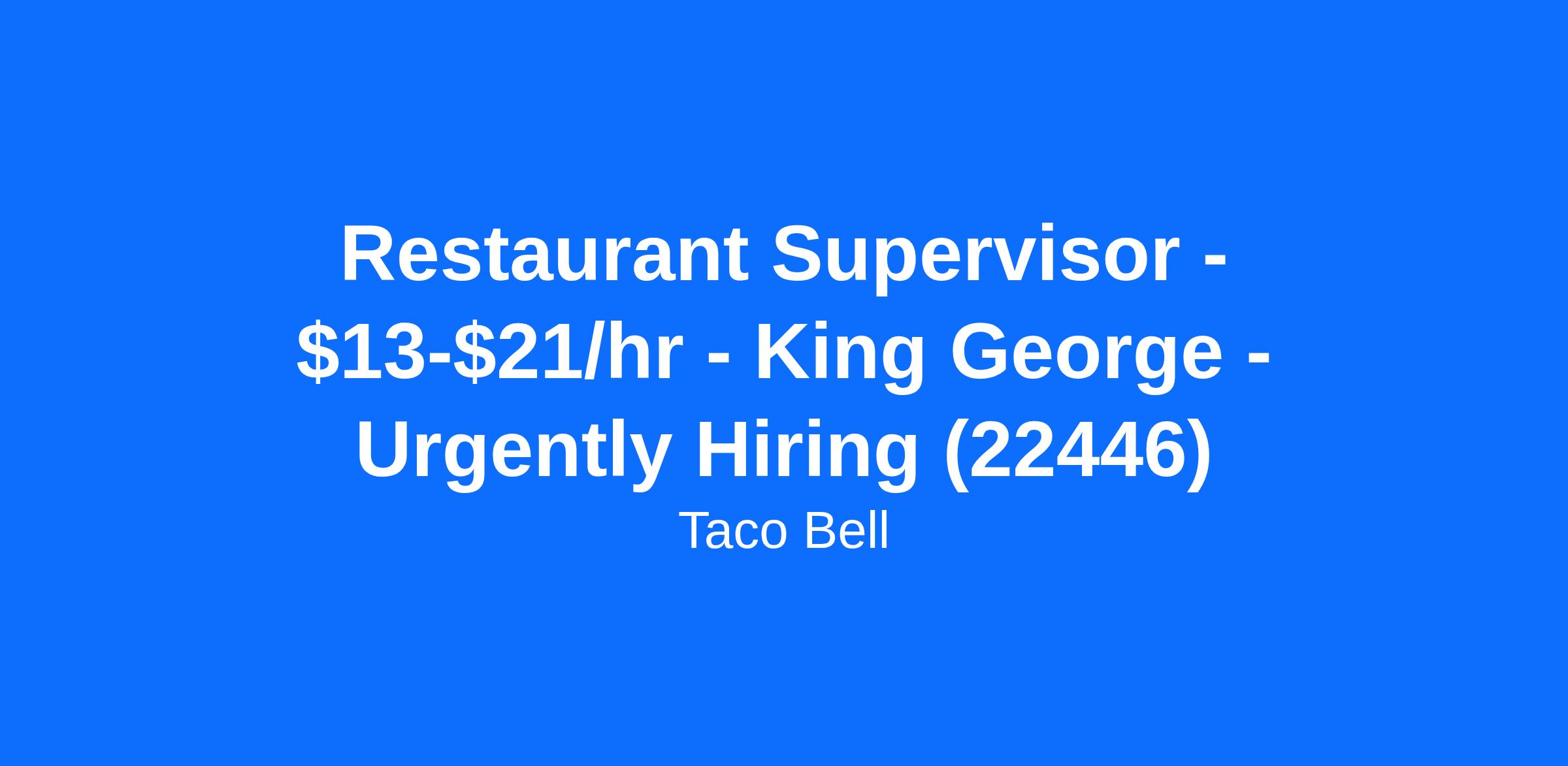 Taco Bell Dahlgren is currently hiring a full time or part time Restaurant Supervisor for our King George, VA location. A Restaurant Supervisor should not only supervise their team but lead it to acheive their goals. A Restaurant Supervisor will assist in the planning and management at Taco Bell Dahlgren in order to achieve customer satisfaction, quality service, compliance with store policies all while meeting and/or exceeding financial goals. Applicants for this role should have effective verbal and written communication skills.