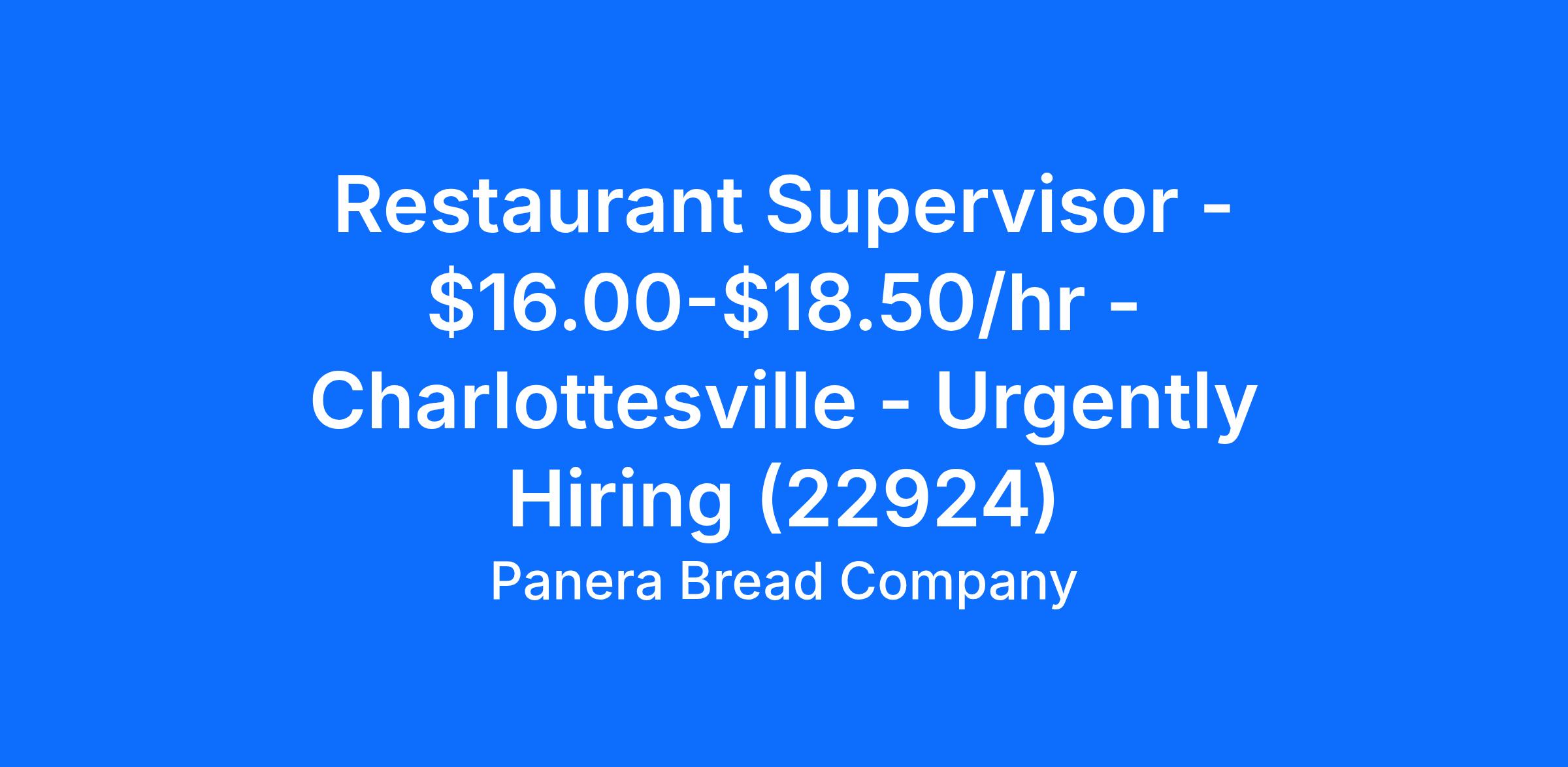 Restaurant Supervisor - $16.00-$18.50/hr - Charlottesville - Urgently Hiring (22924)