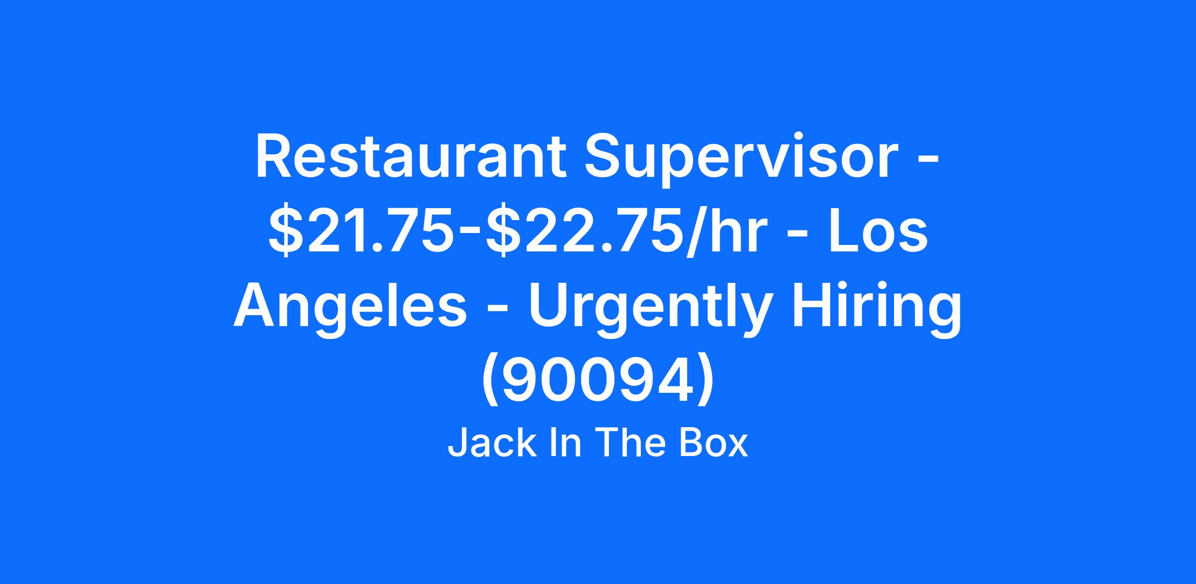 Restaurant Supervisor - $21.75-$22.75/hr - Los Angeles - Urgently Hiring (90094)