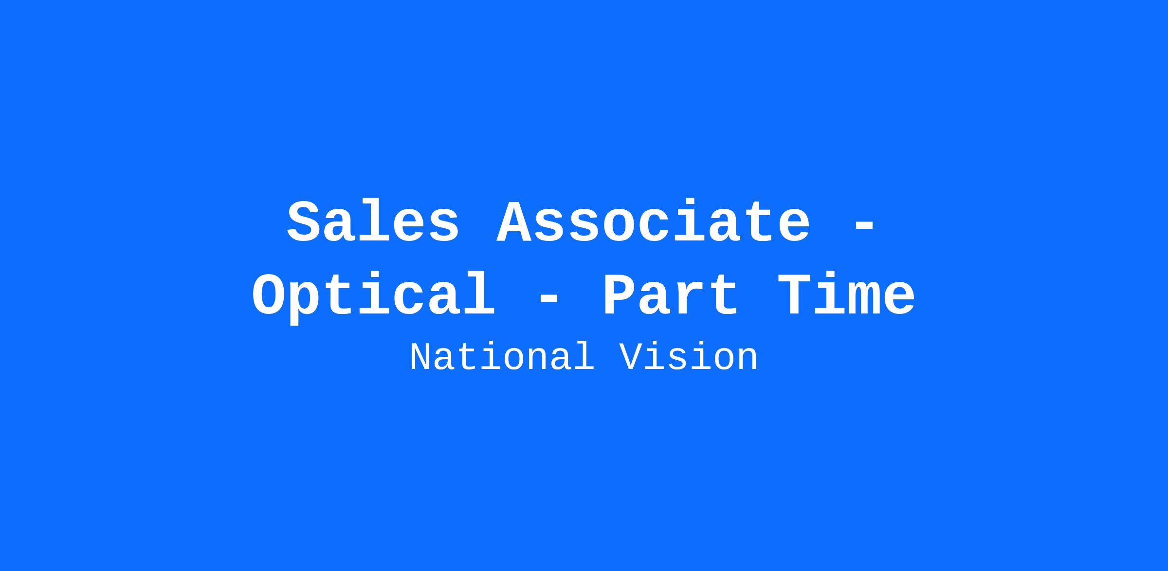 Sales Associate - Optical - Part Time