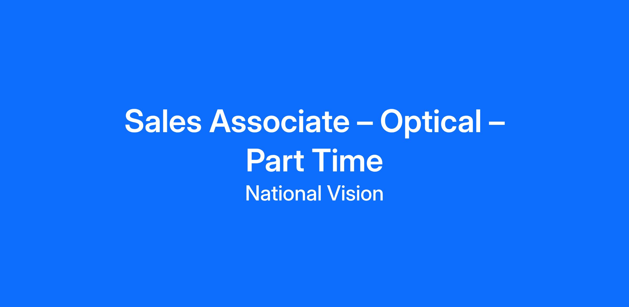 Join our dynamic sales team at National Vision as a Sales Associate, where your passion for people and community comes to life through excellent customer service and expert guidance in eyewear selection. This role focuses on meeting company objectives and fostering an inclusive environment.