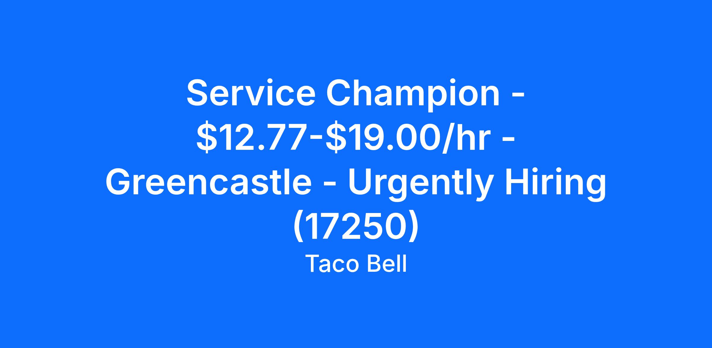 Service Champion - $12.77-$19.00/hr - Greencastle - Urgently Hiring (17250)