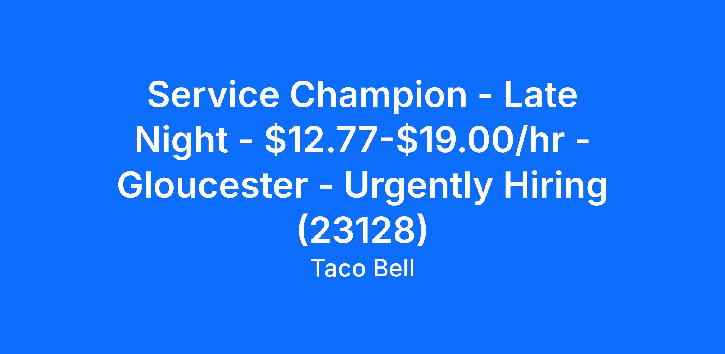 Service Champion - Late Night - $12.77-$19.00/hr - Gloucester - Urgently Hiring (23128)