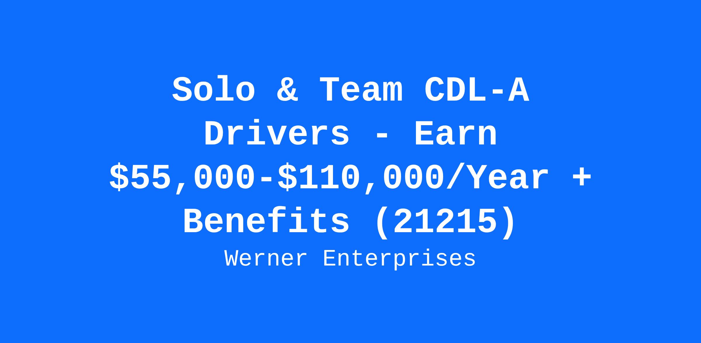 Solo & Team CDL-A Drivers - Earn $55,000-$110,000/Year + Benefits (21215)