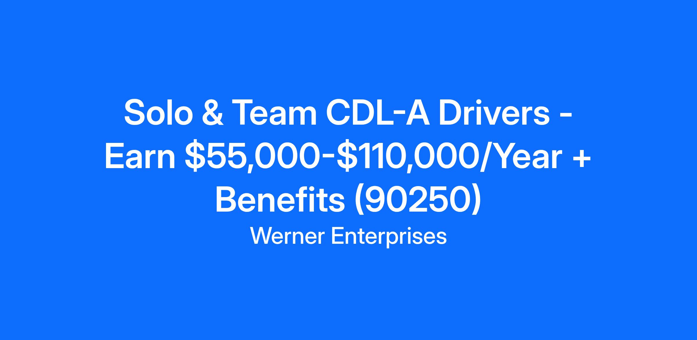 Solo & Team CDL-A Drivers - Earn $55,000-$110,000/Year + Benefits (90250)