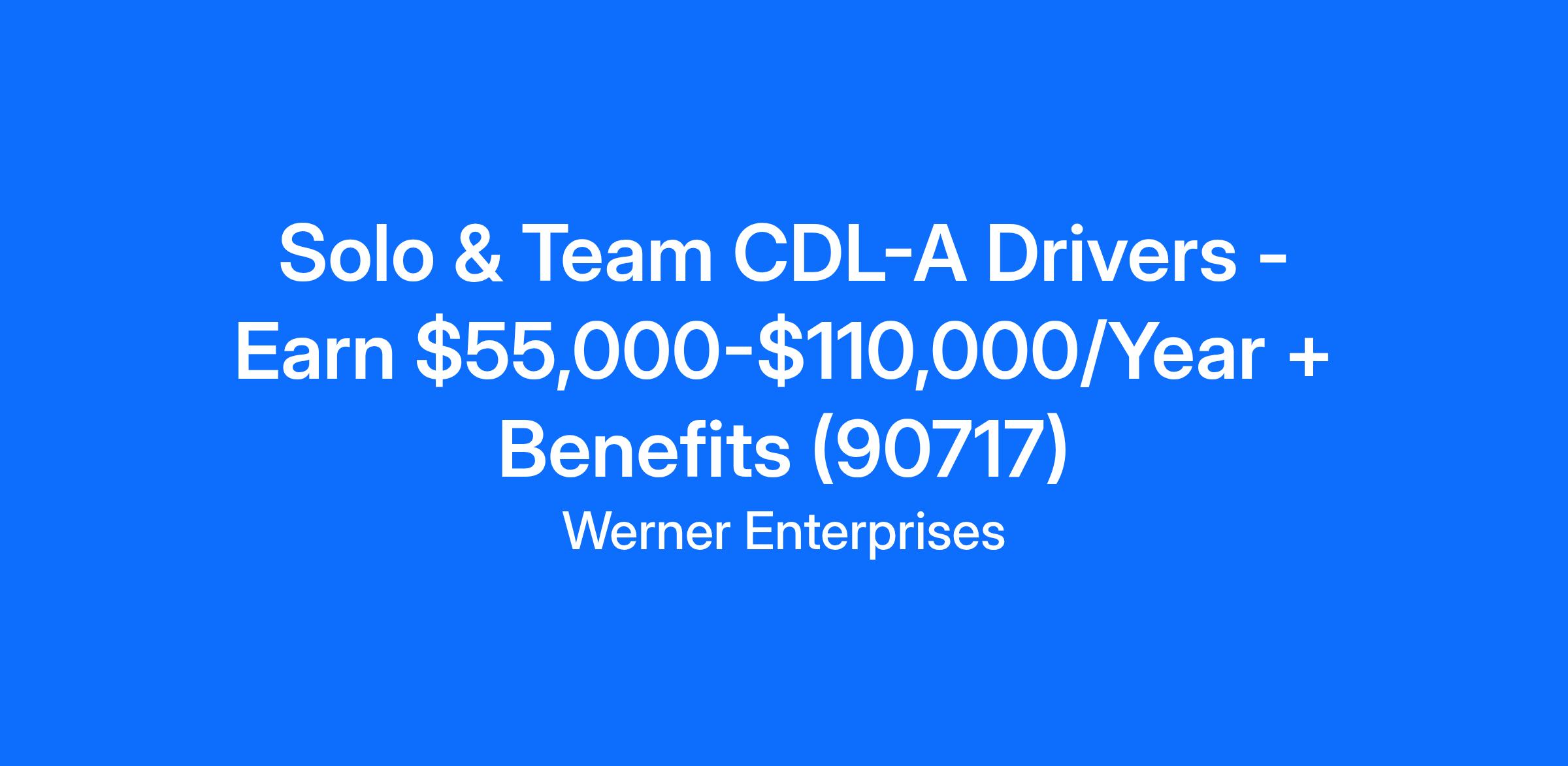 Solo & Team CDL-A Drivers - Earn $55,000-$110,000/Year + Benefits (90717)