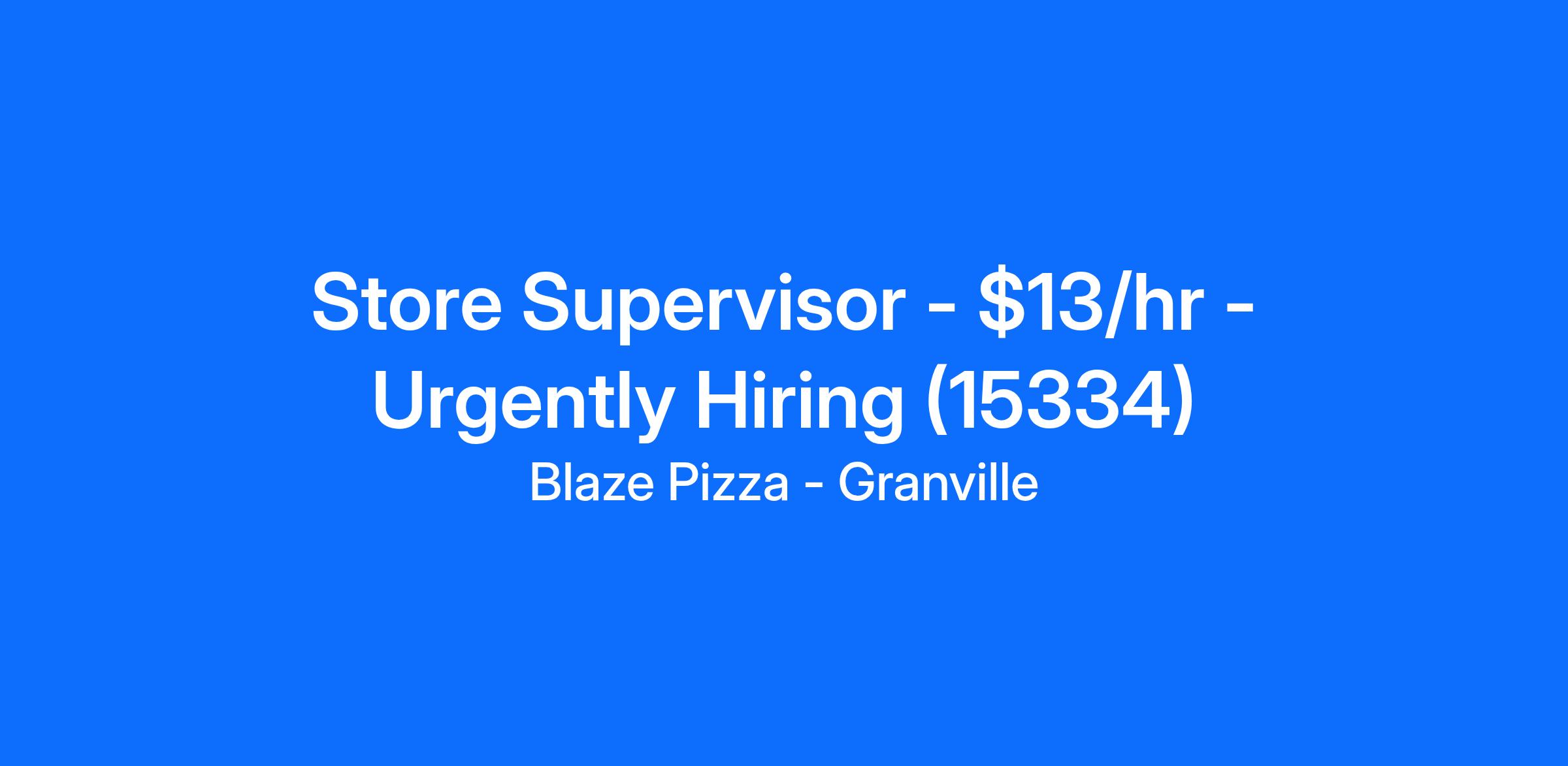 Store Supervisor - $13/hr - Urgently Hiring (15334)