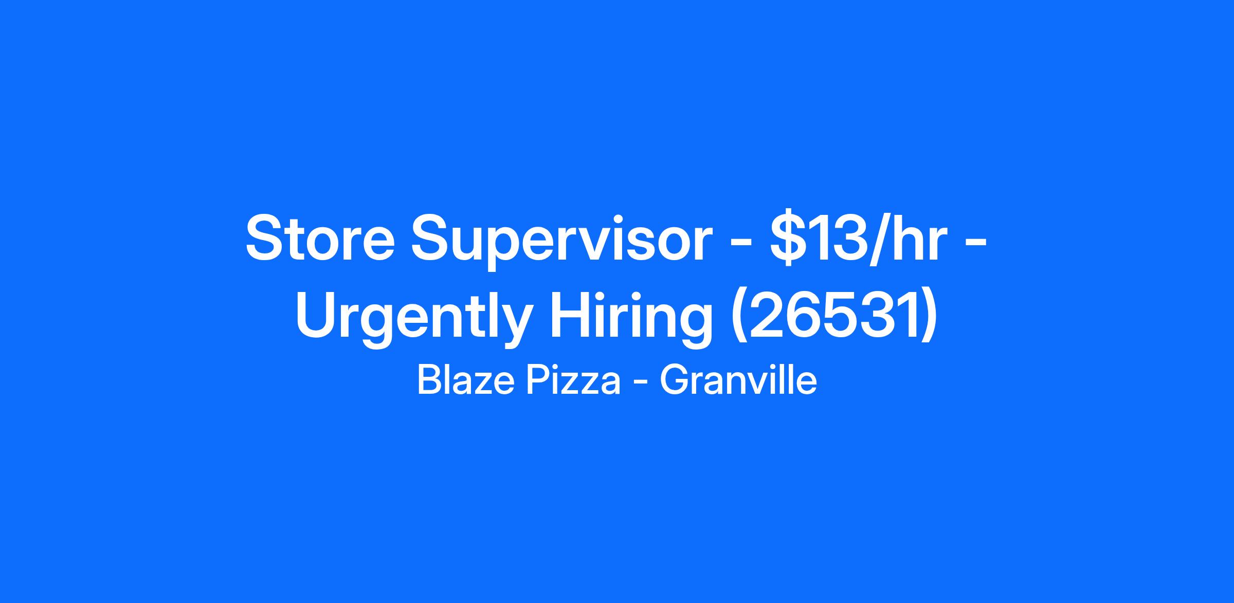 Store Supervisor - $13/hr - Urgently Hiring (26531)