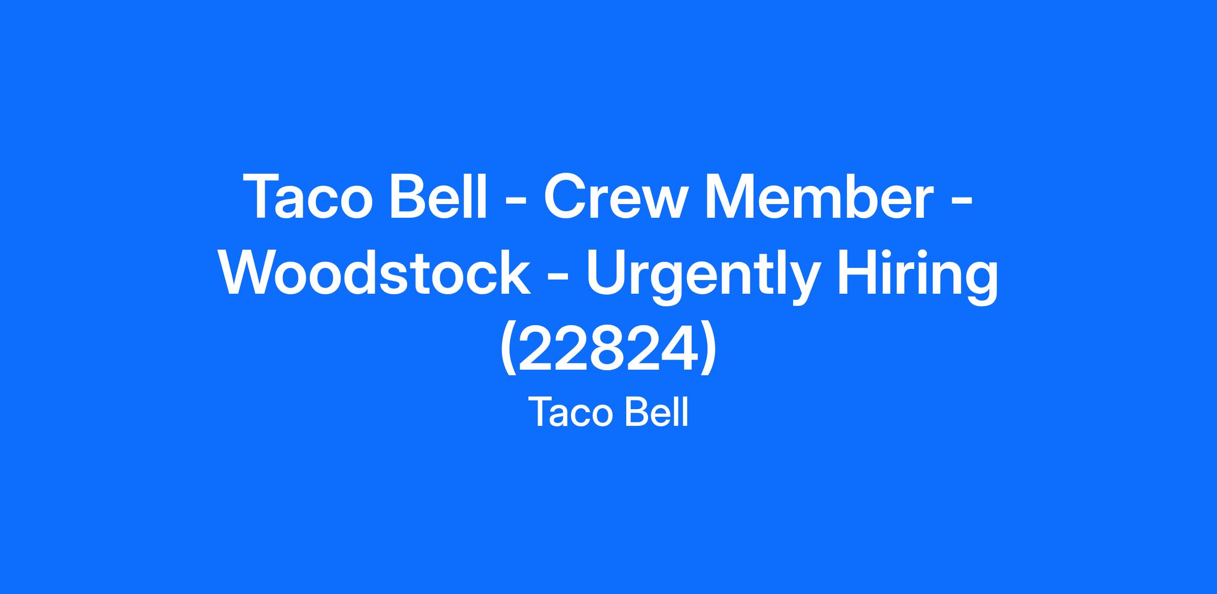 Taco Bell - Crew Member - Woodstock - Urgently Hiring (22824)