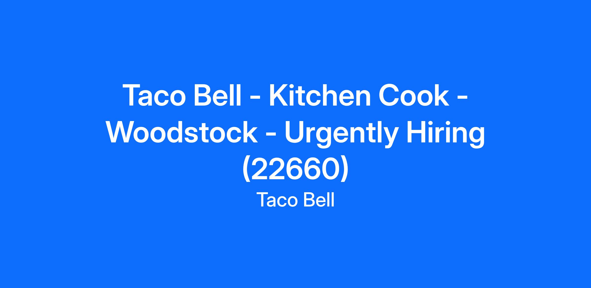 Taco Bell - Kitchen Cook - Woodstock - Urgently Hiring (22660)