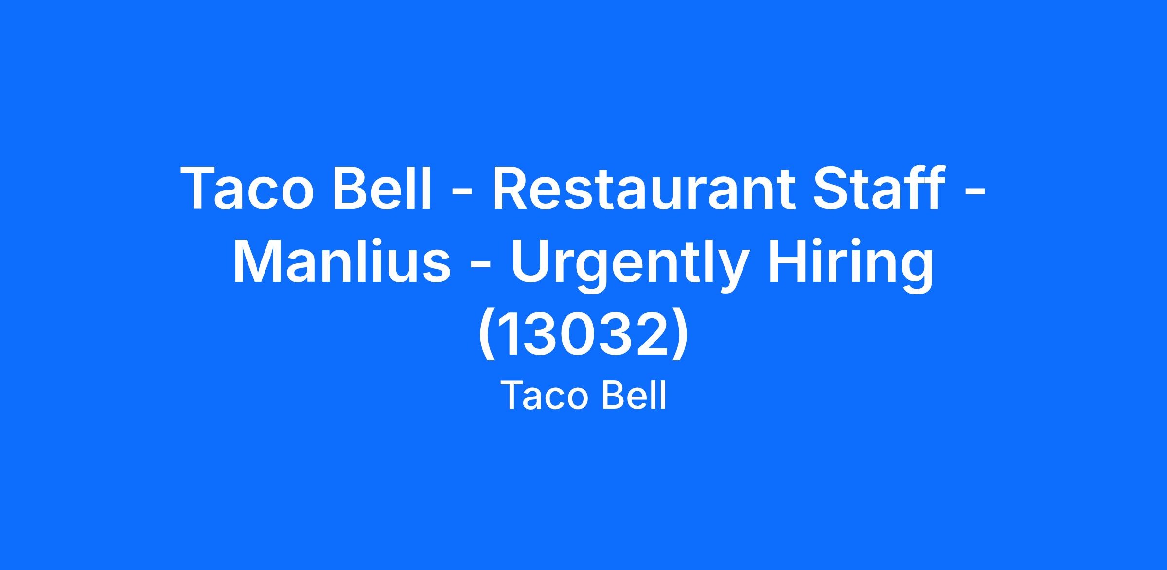 Taco Bell - Restaurant Staff - Manlius - Urgently Hiring (13032)