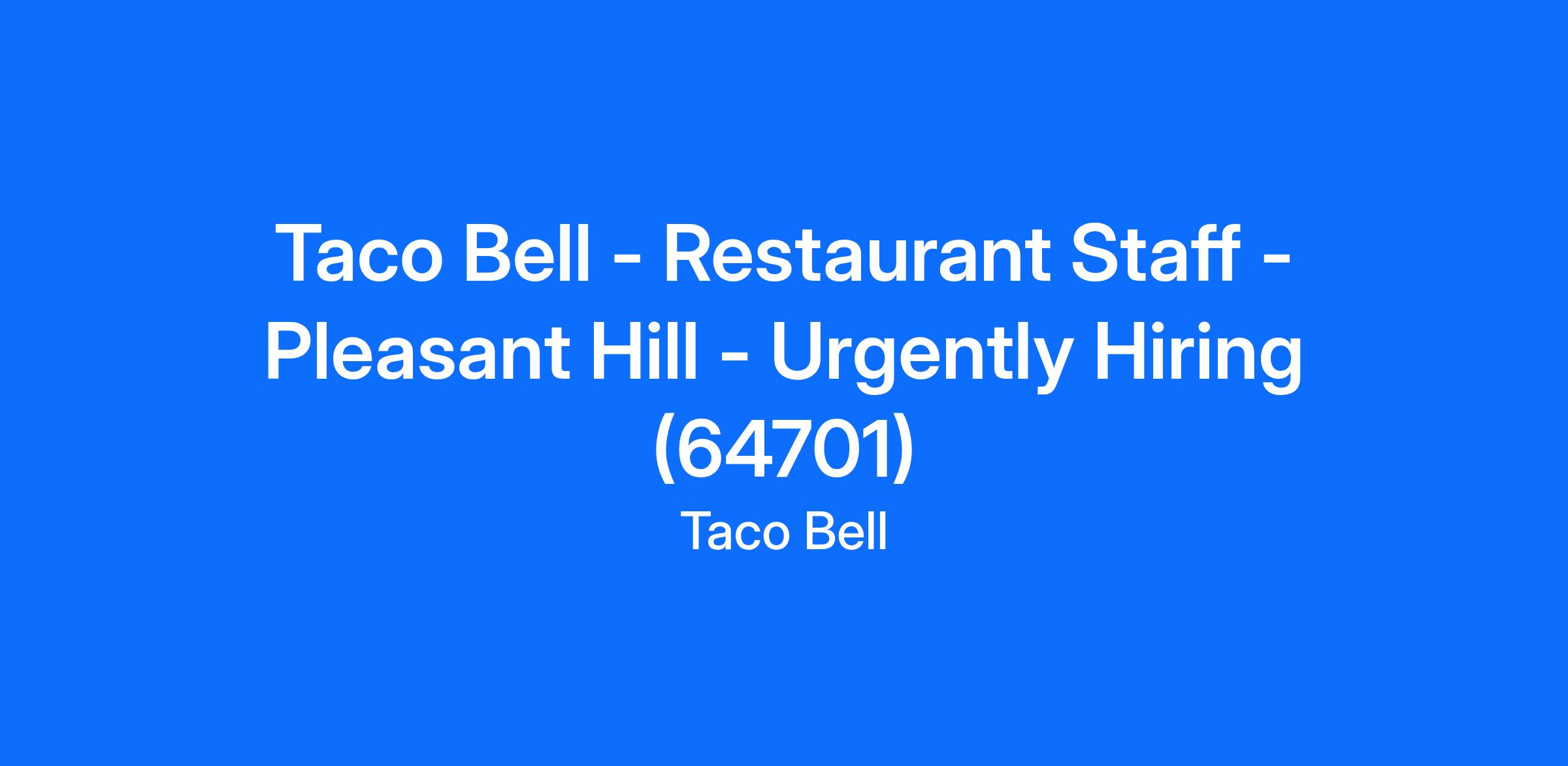 Taco Bell - Restaurant Staff - Pleasant Hill - Urgently Hiring (64701)