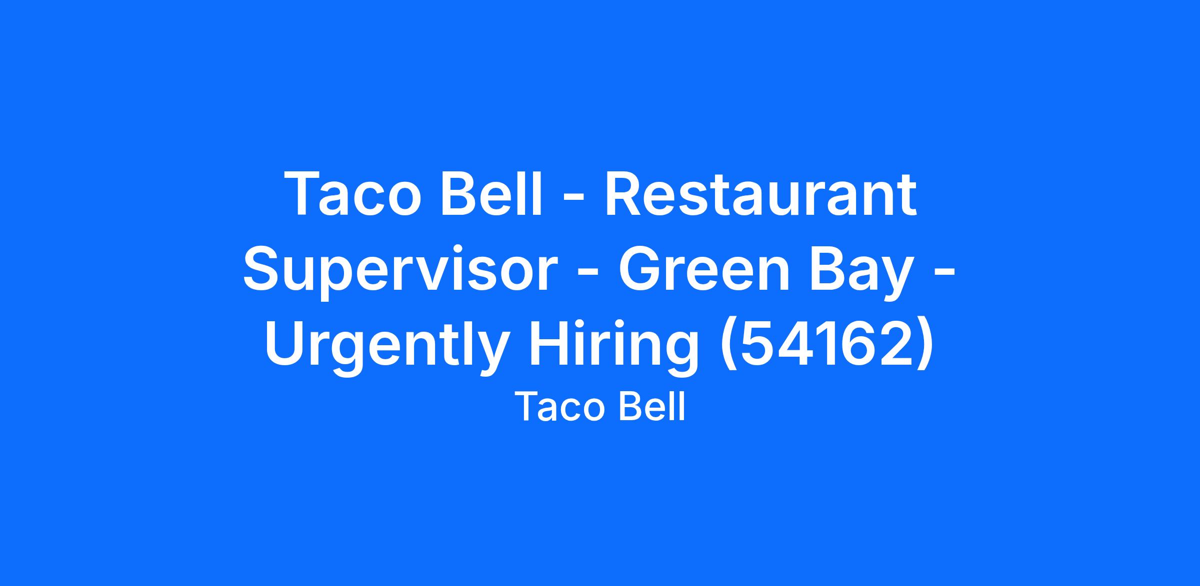 Taco Bell - Restaurant Supervisor - Green Bay - Urgently Hiring (54162)