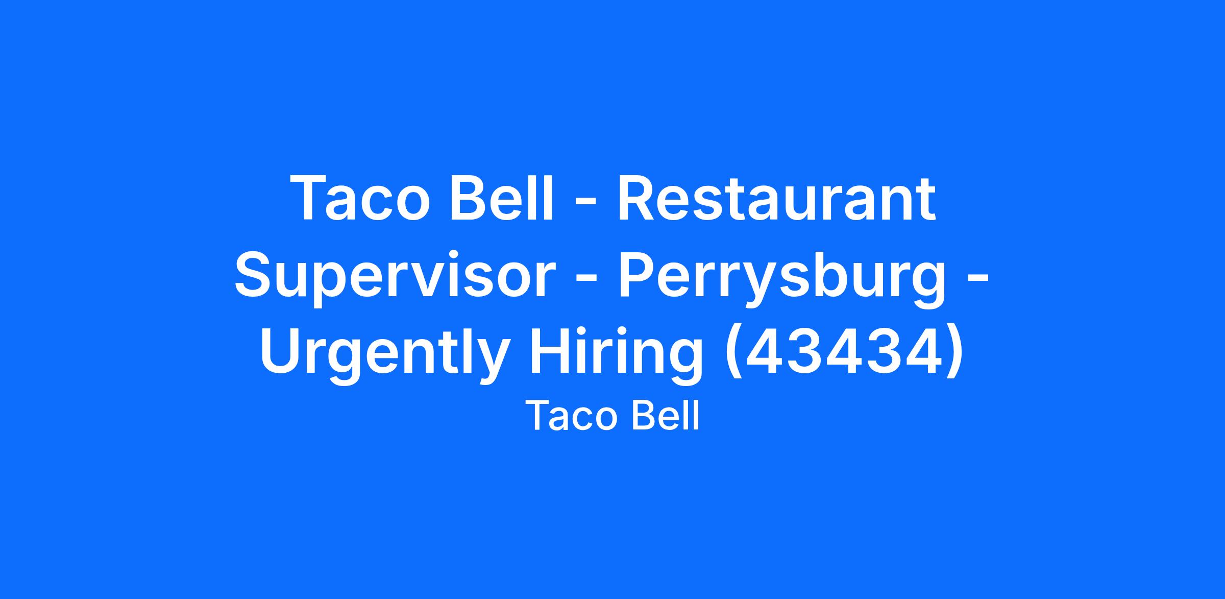 Taco Bell - Restaurant Supervisor - Perrysburg - Urgently Hiring (43434)