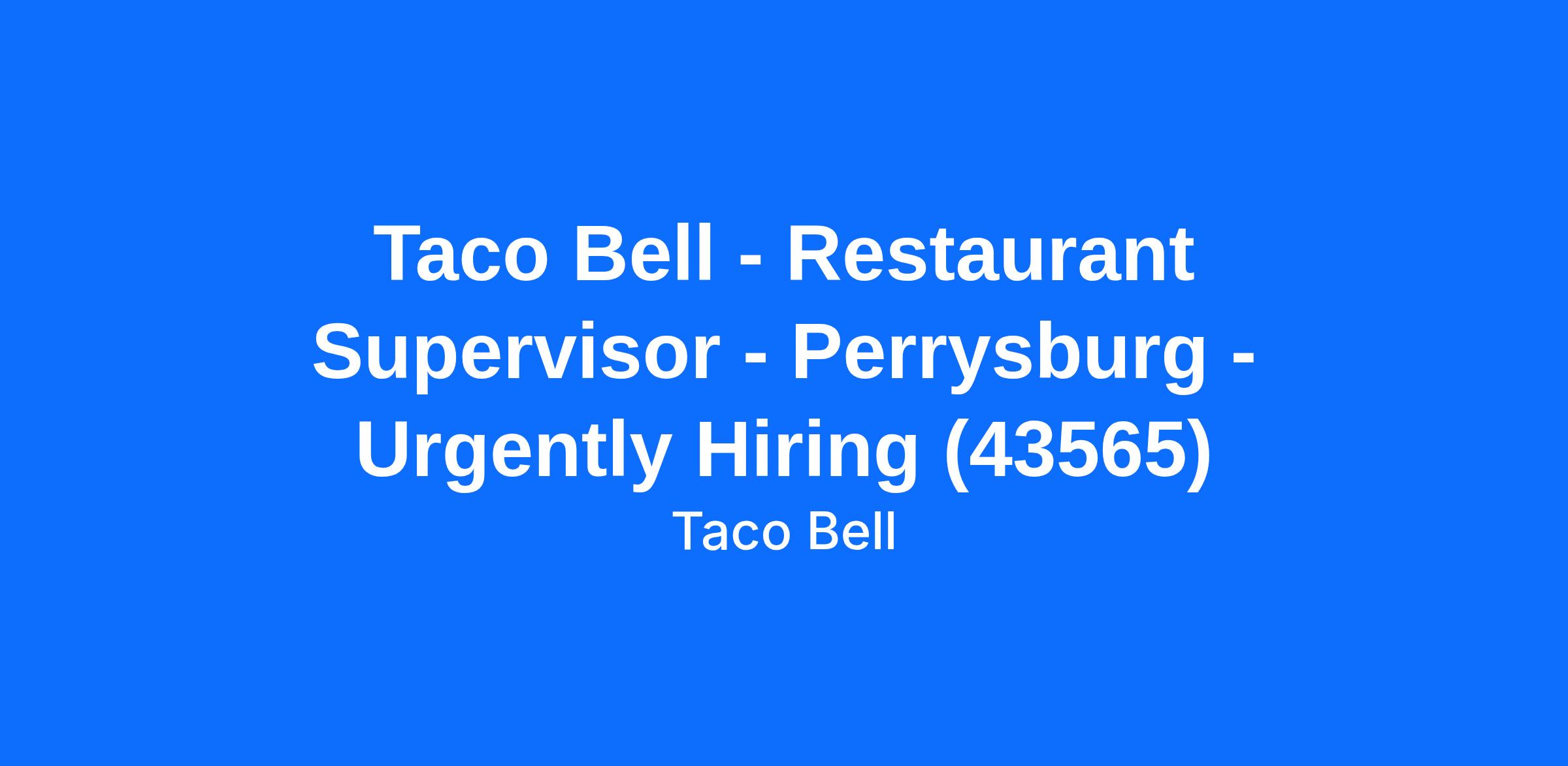 Taco Bell - Restaurant Supervisor - Perrysburg - Urgently Hiring (43565)