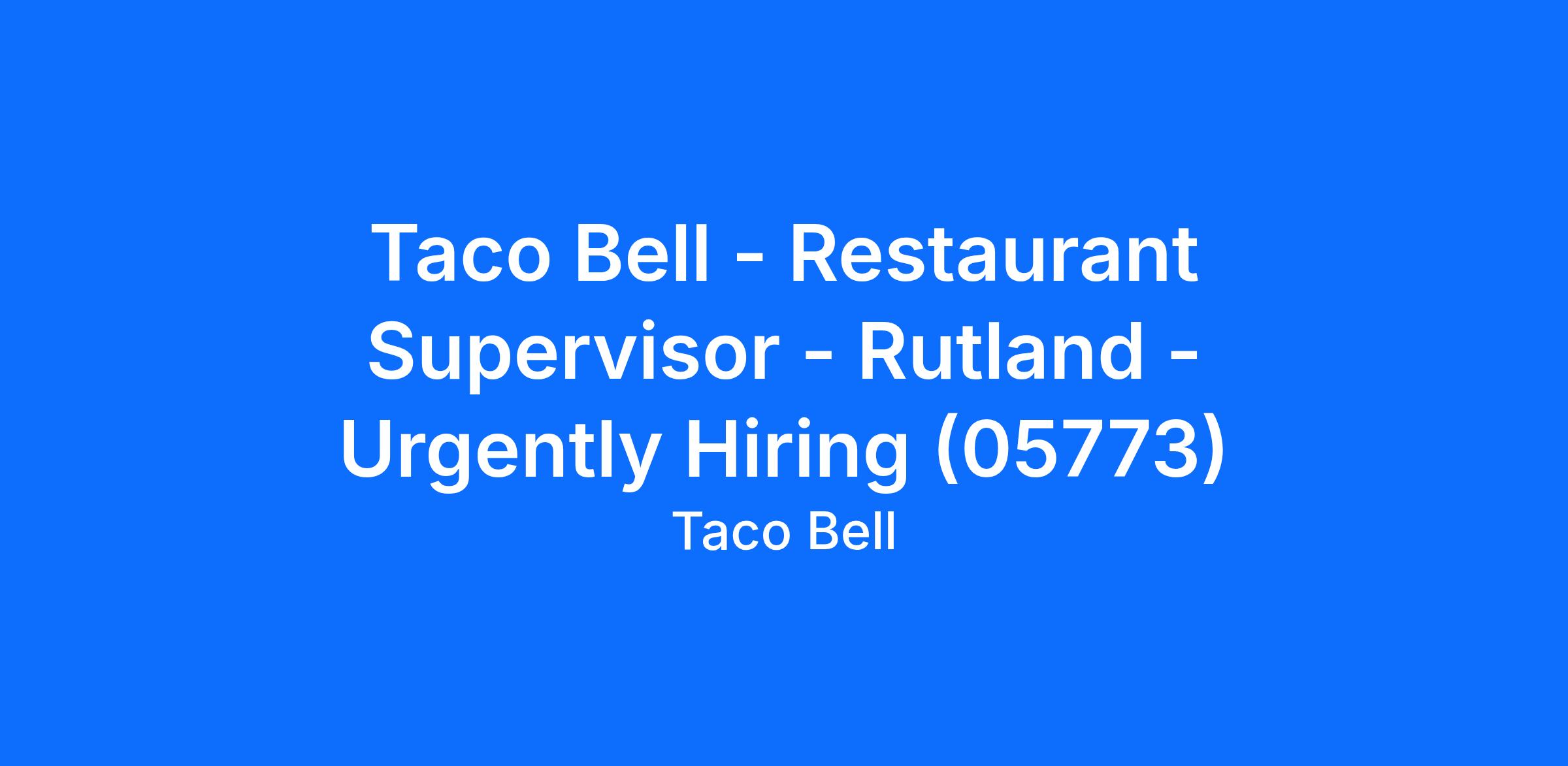 Taco Bell - Restaurant Supervisor - Rutland - Urgently Hiring (05773)