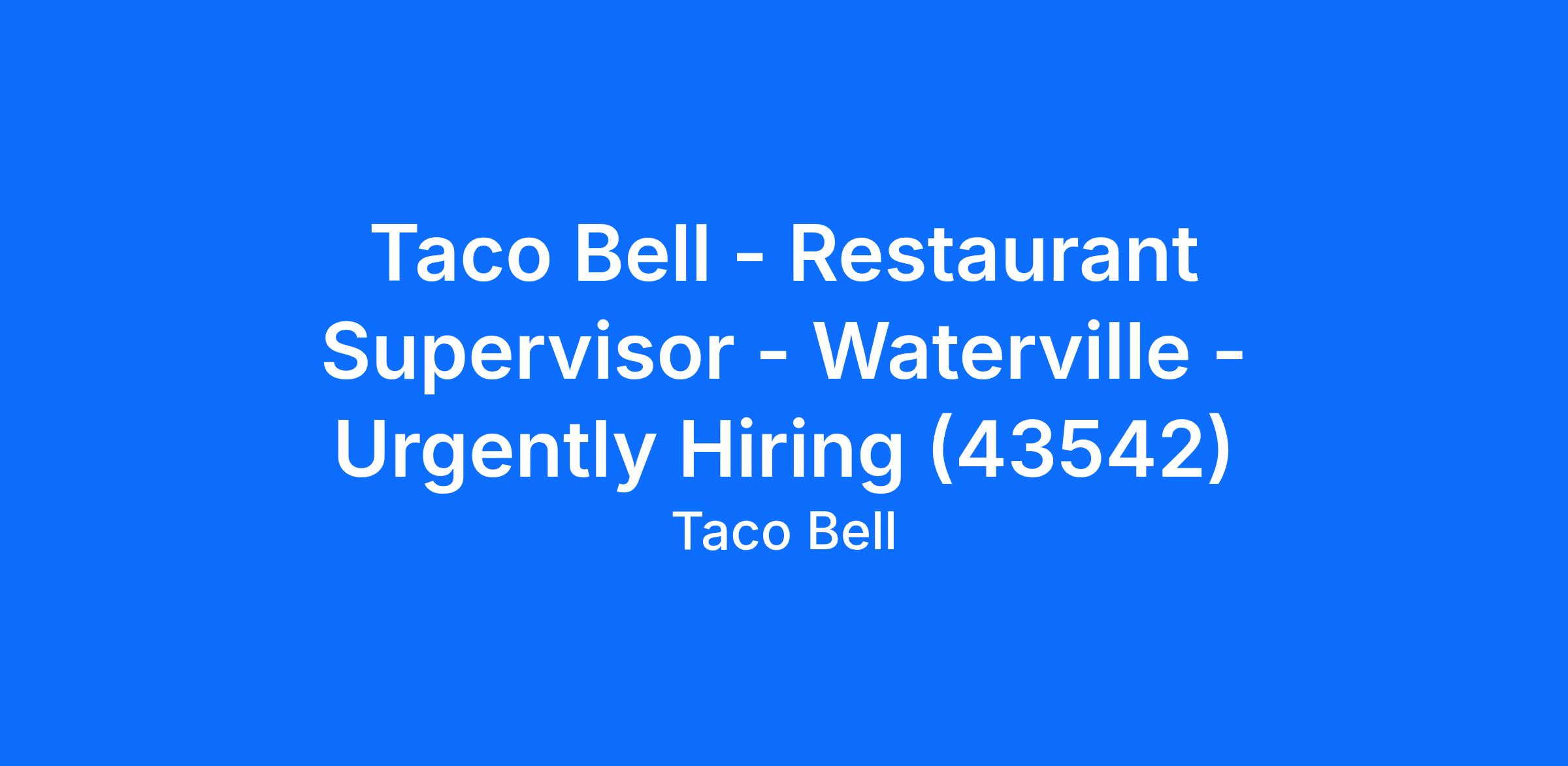Taco Bell - Restaurant Supervisor - Waterville - Urgently Hiring (43542)