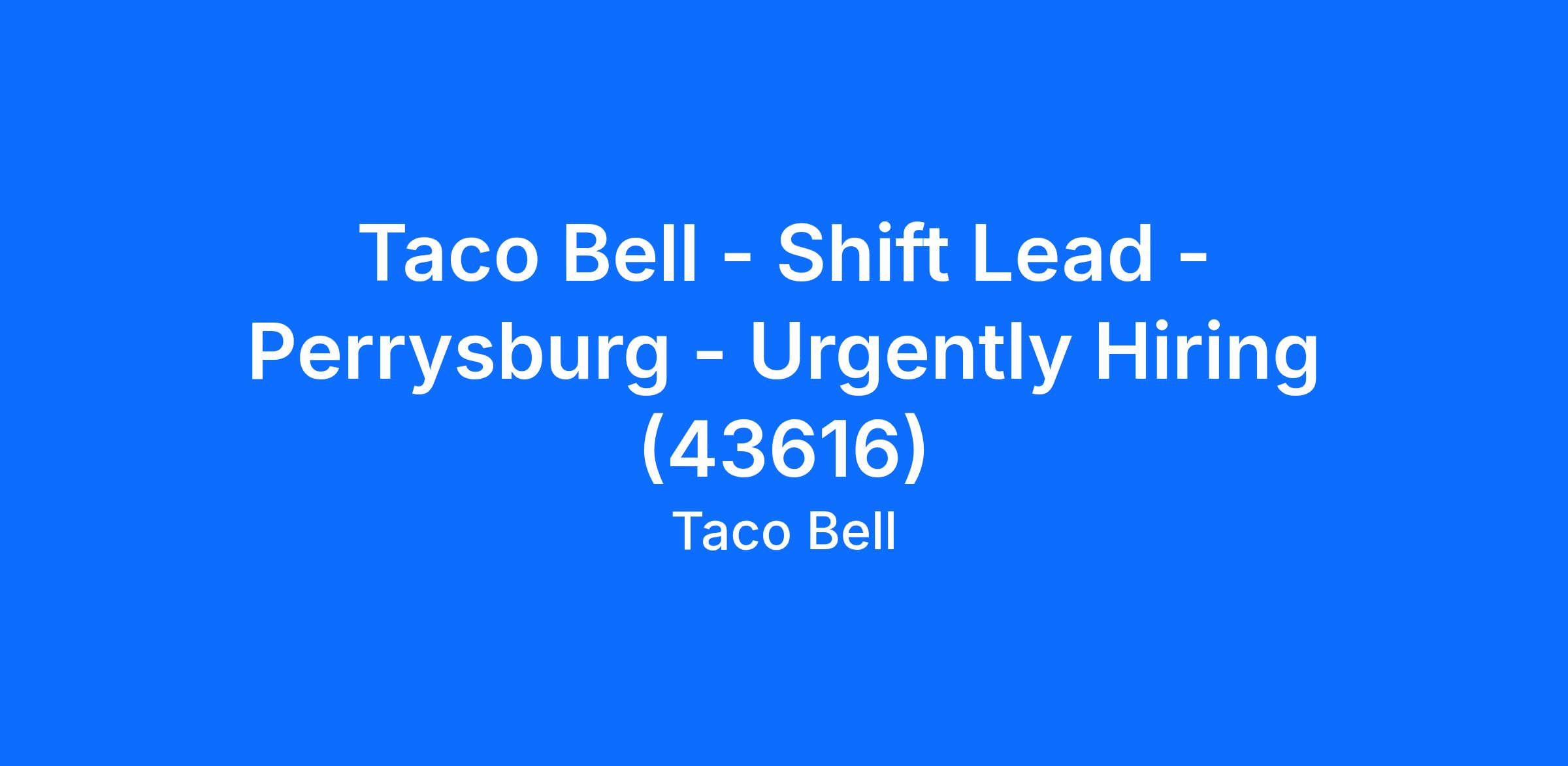 Taco Bell - Shift Lead - Perrysburg - Urgently Hiring (43616)