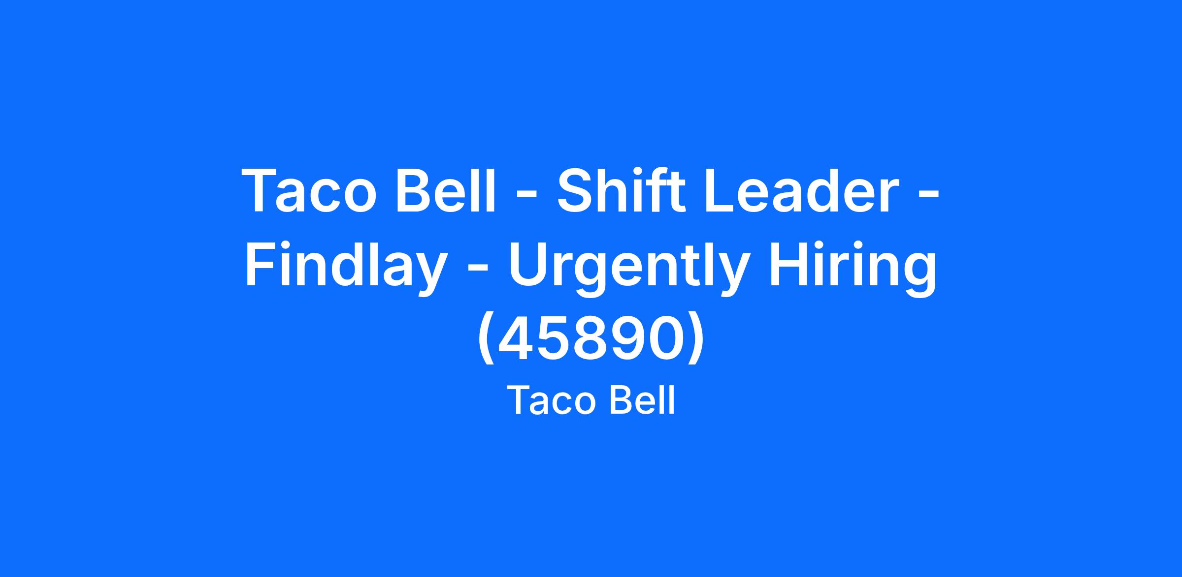 Taco Bell - Shift Leader - Findlay - Urgently Hiring (45890)