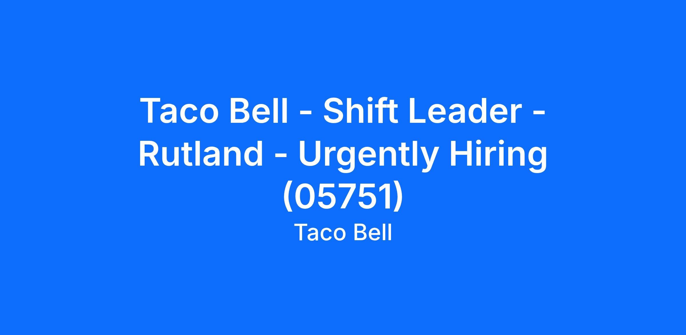 Taco Bell - Shift Leader - Rutland - Urgently Hiring (05751)