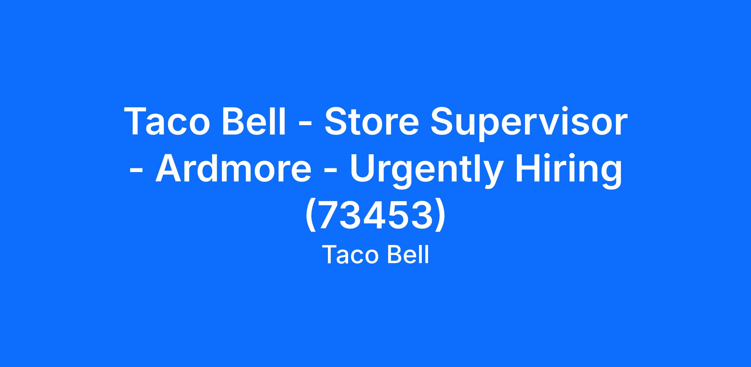 Taco Bell - Store Supervisor - Ardmore - Urgently Hiring (73453)