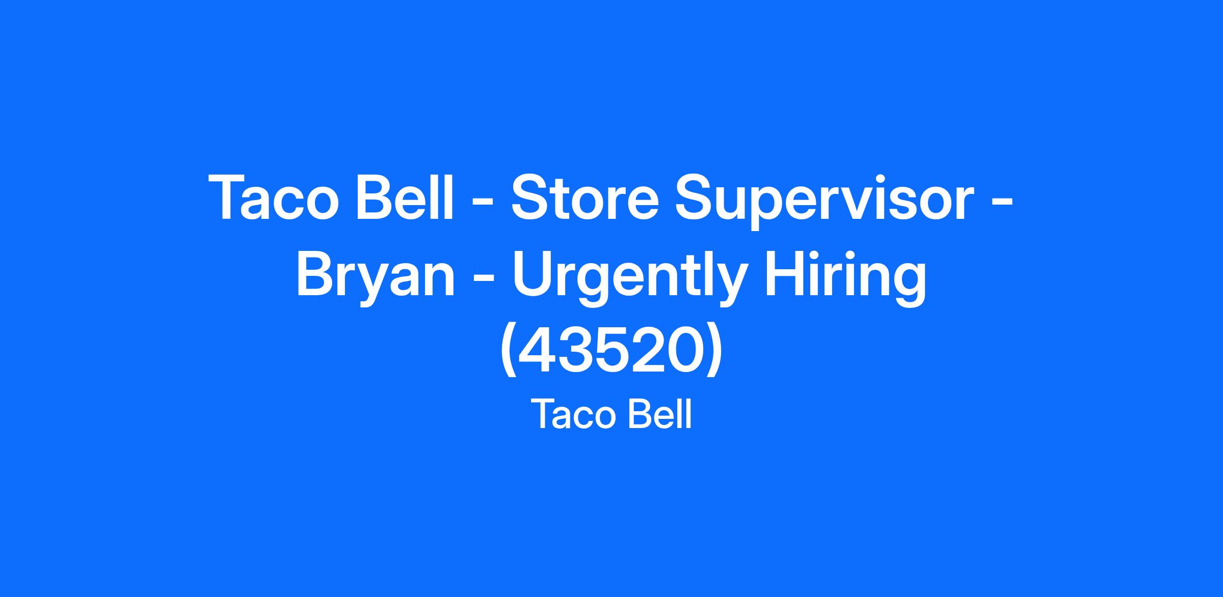 Taco Bell - Store Supervisor - Bryan - Urgently Hiring (43520)
