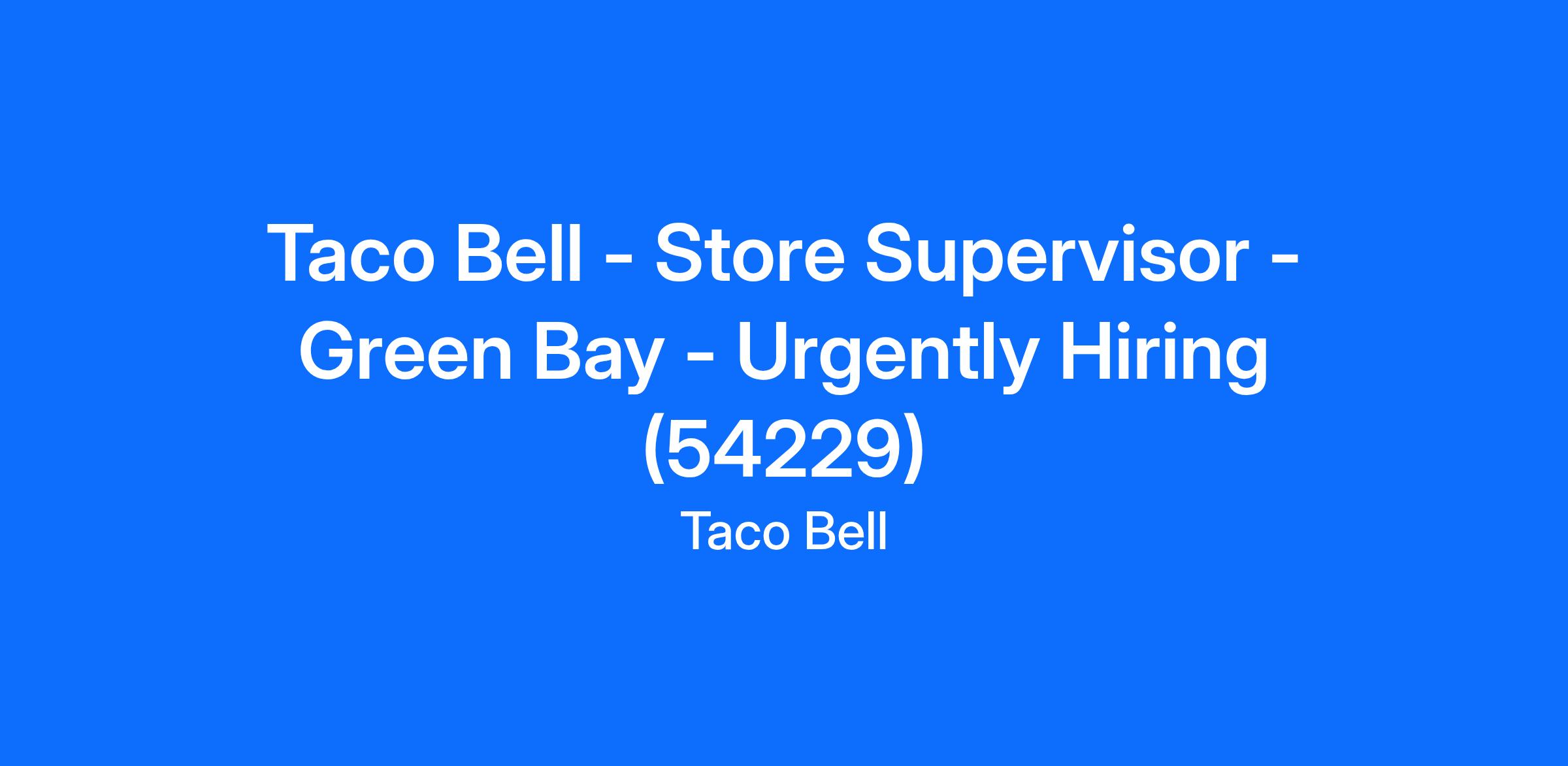 Taco Bell - Store Supervisor - Green Bay - Urgently Hiring (54229)
