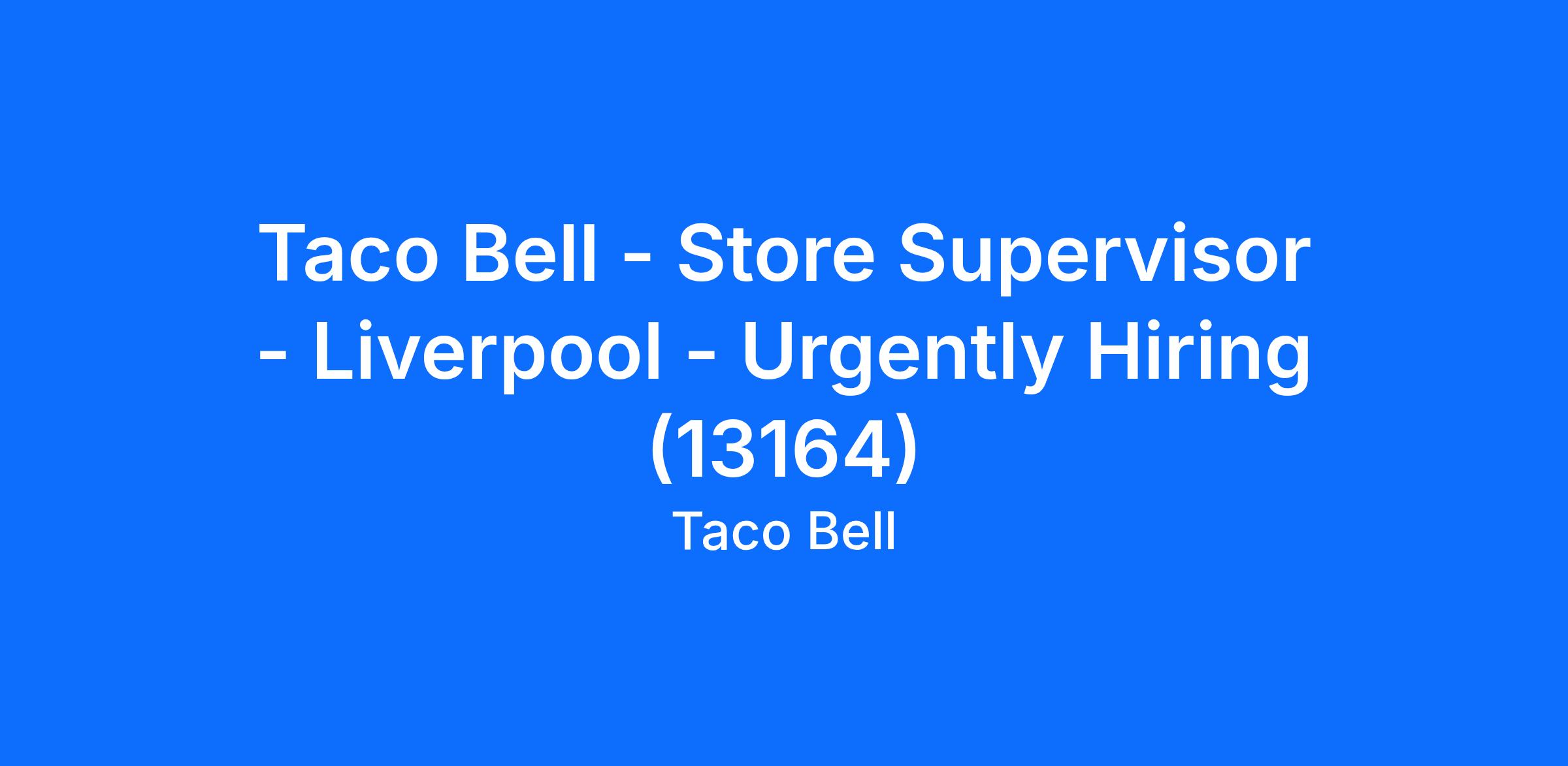 Taco Bell - Store Supervisor - Liverpool - Urgently Hiring (13164)