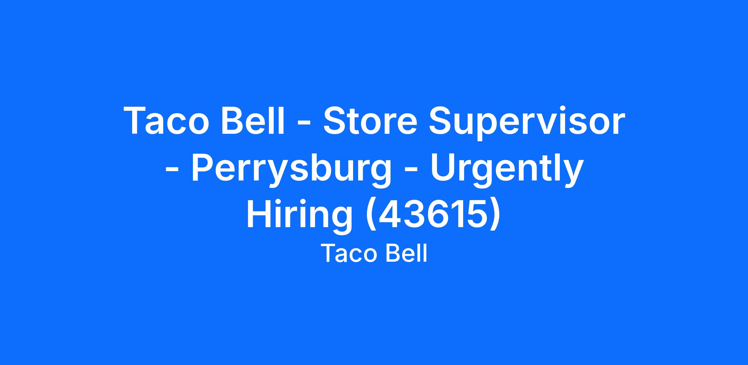 Taco Bell - Store Supervisor - Perrysburg - Urgently Hiring (43615)