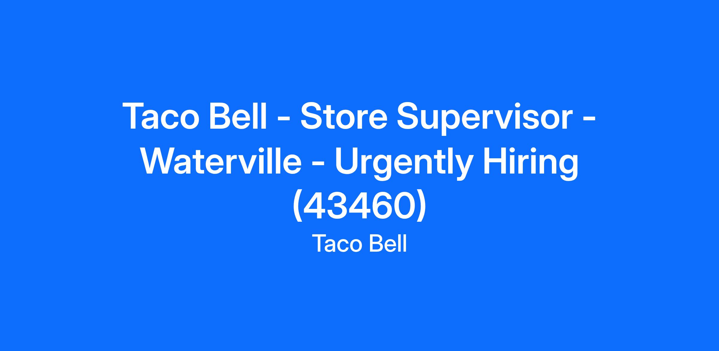 Taco Bell - Store Supervisor - Waterville - Urgently Hiring (43460)