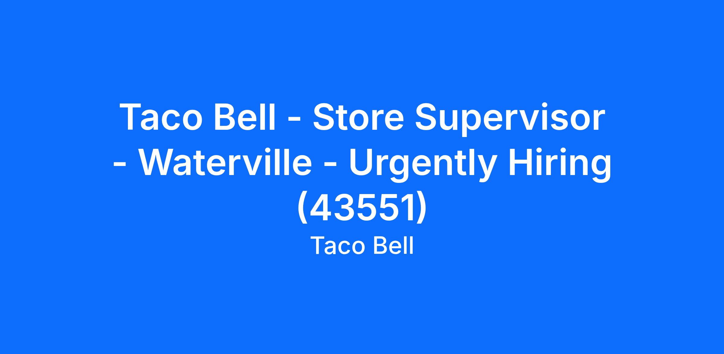 Taco Bell - Store Supervisor - Waterville - Urgently Hiring (43551)