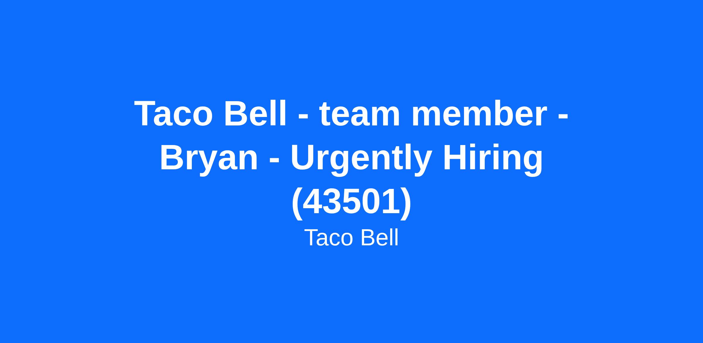Taco Bell - team member - Bryan - Urgently Hiring (43501)