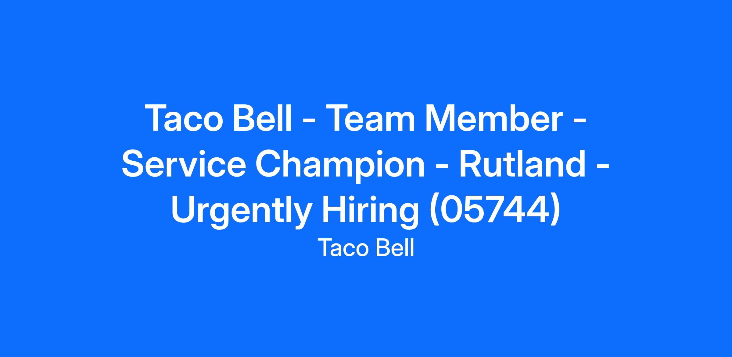 Taco Bell - Team Member - Service Champion - Rutland - Urgently Hiring (05744)