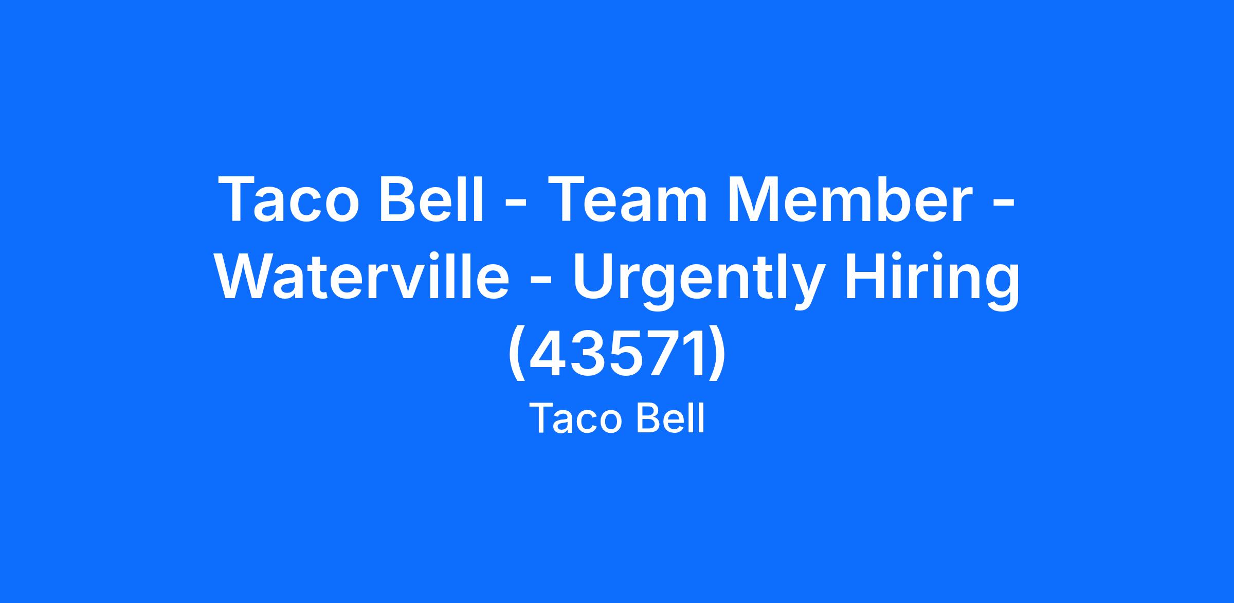 Taco Bell - Team Member - Waterville - Urgently Hiring (43571)