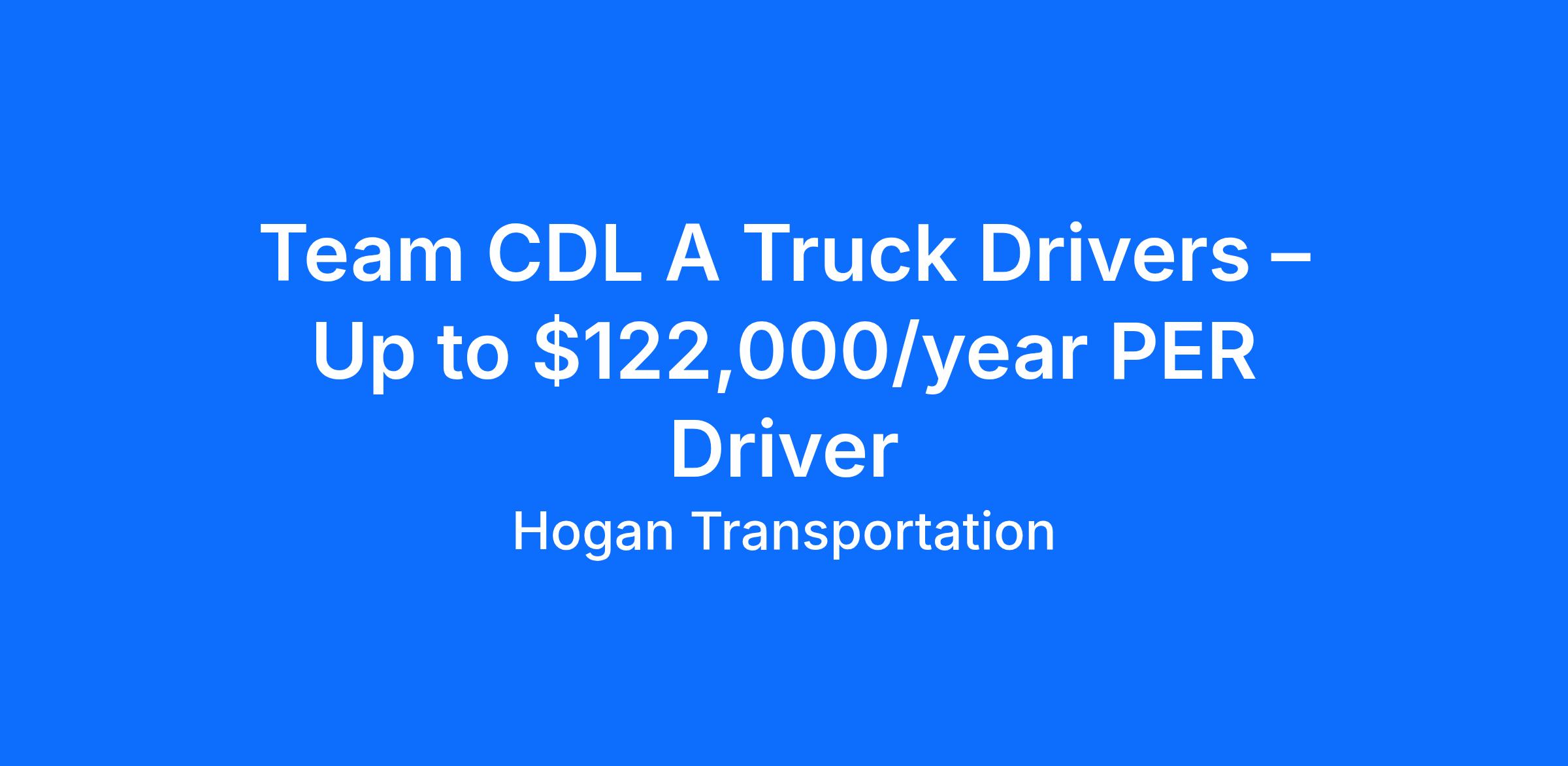 Team CDL A Truck Drivers – Up to $122,000/year PER Driver