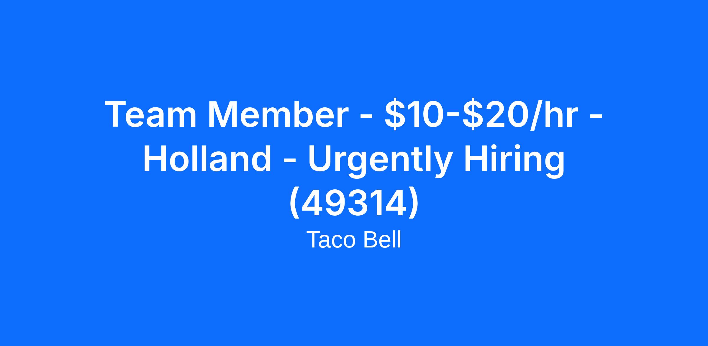 Team Member - $10-$20/hr - Holland - Urgently Hiring (49314)