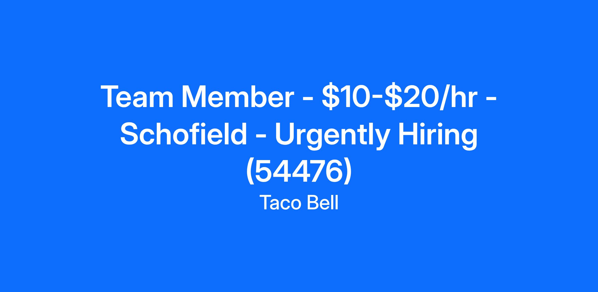 Team Member - $10-$20/hr - Schofield - Urgently Hiring (54476)