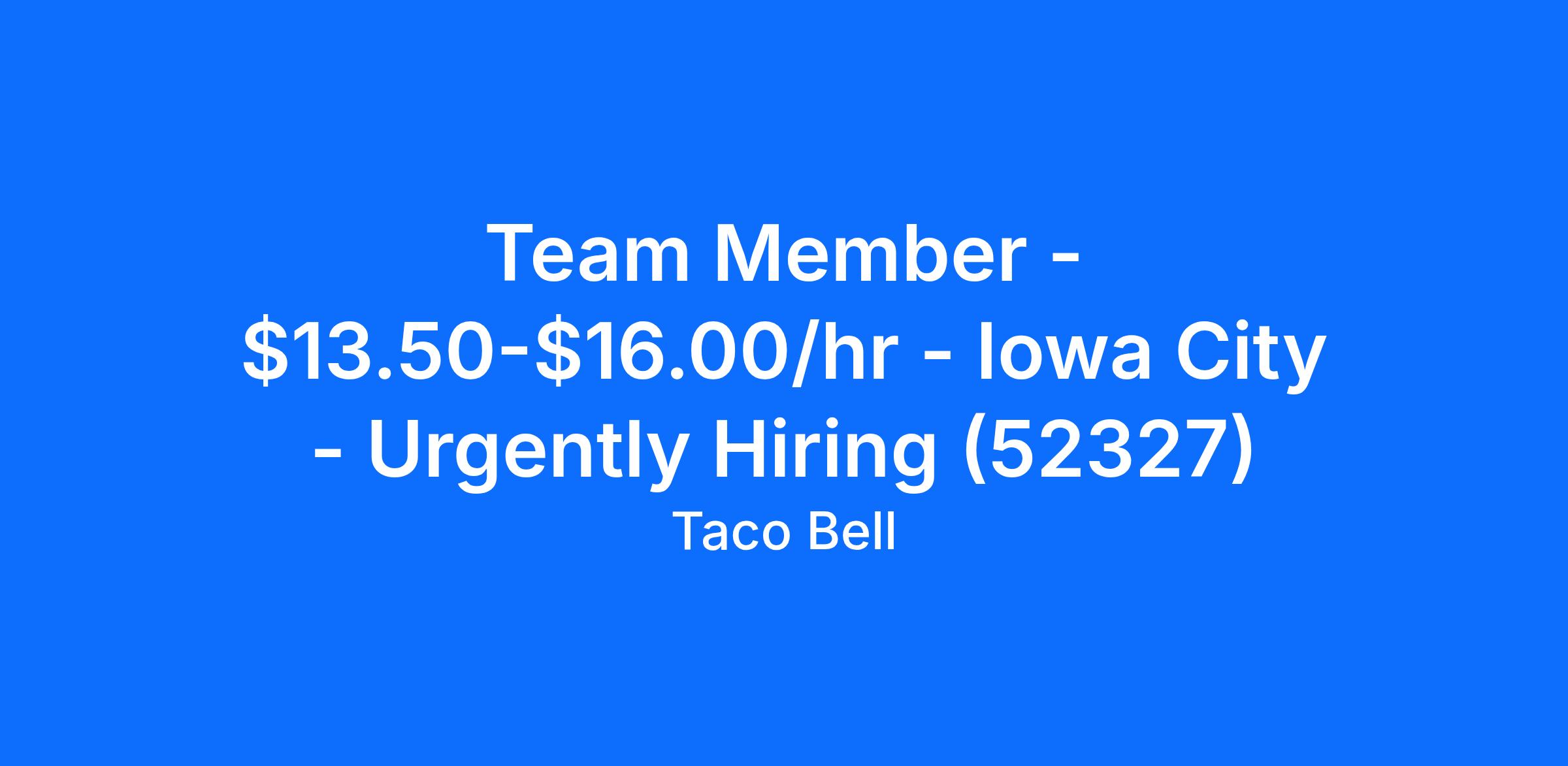 Team Member - $13.50-$16.00/hr - Iowa City - Urgently Hiring (52327)