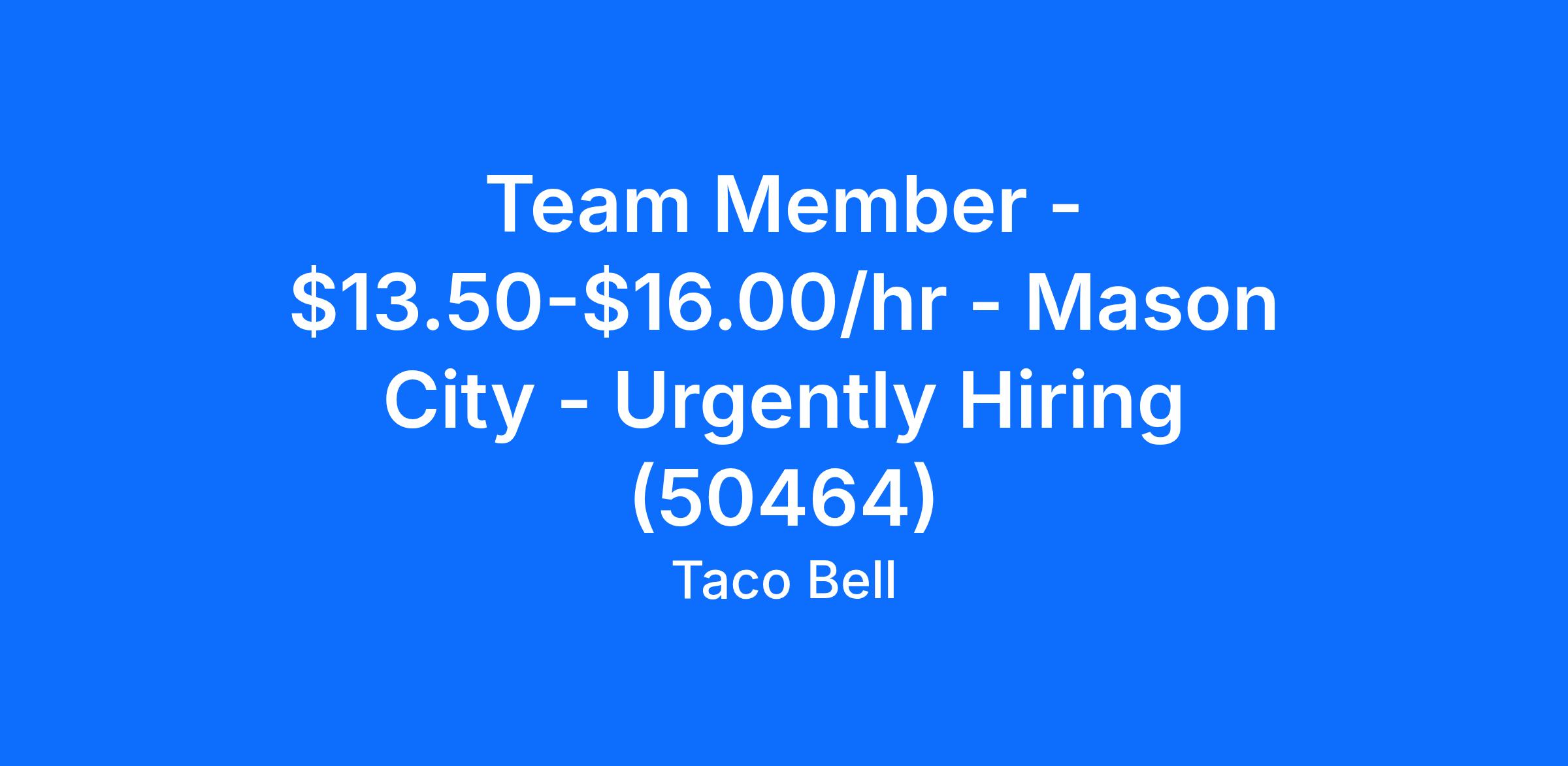 Team Member - $13.50-$16.00/hr - Mason City - Urgently Hiring (50464)