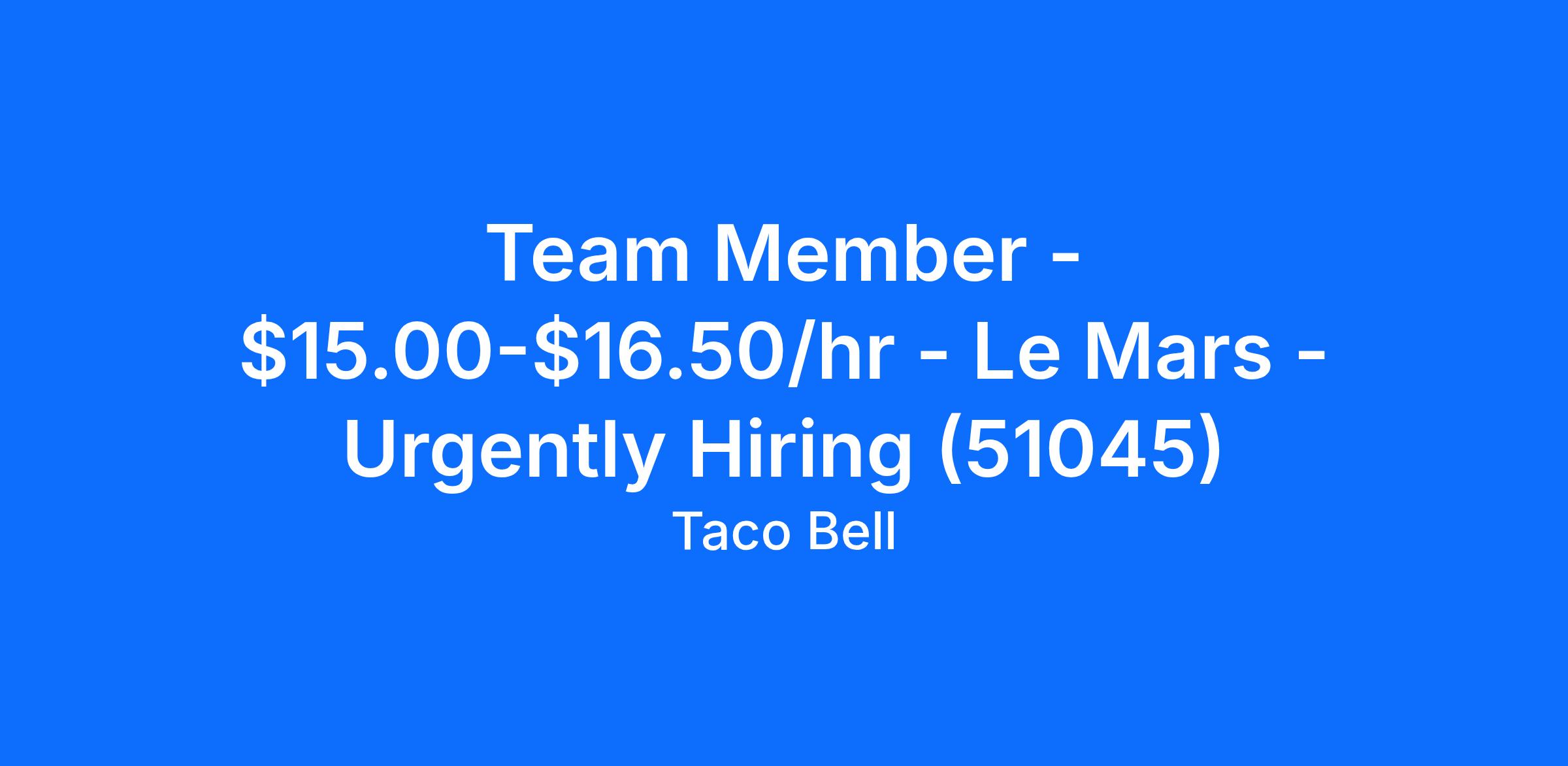 Team Member - $15.00-$16.50/hr - Le Mars - Urgently Hiring (51045)