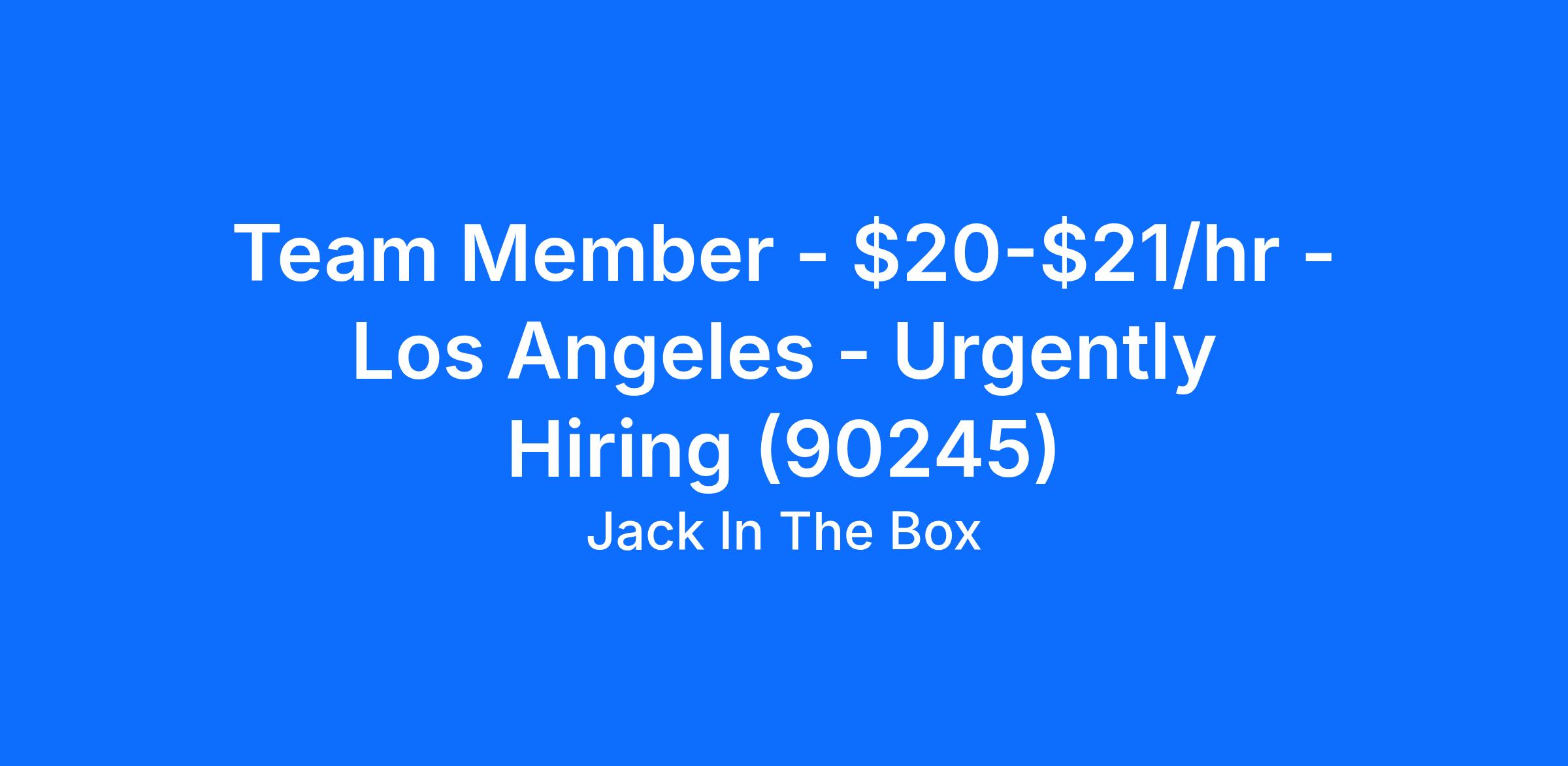 Team Member - $20-$21/hr - Los Angeles - Urgently Hiring (90245)
