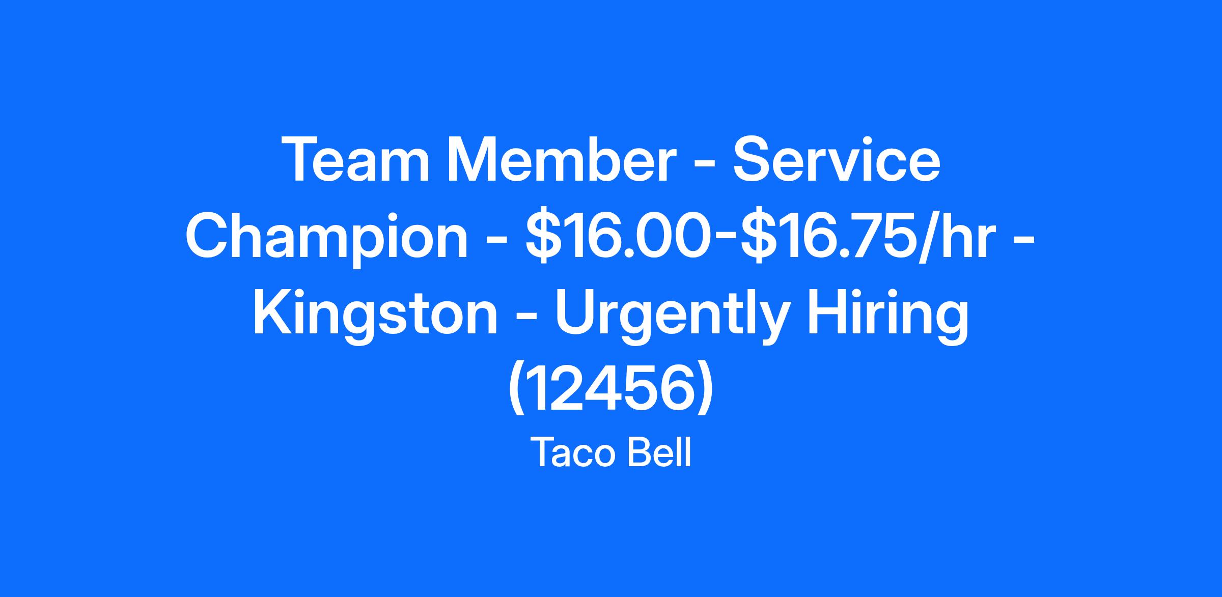 Team Member - Service Champion - $16.00-$16.75/hr - Kingston - Urgently Hiring (12456)