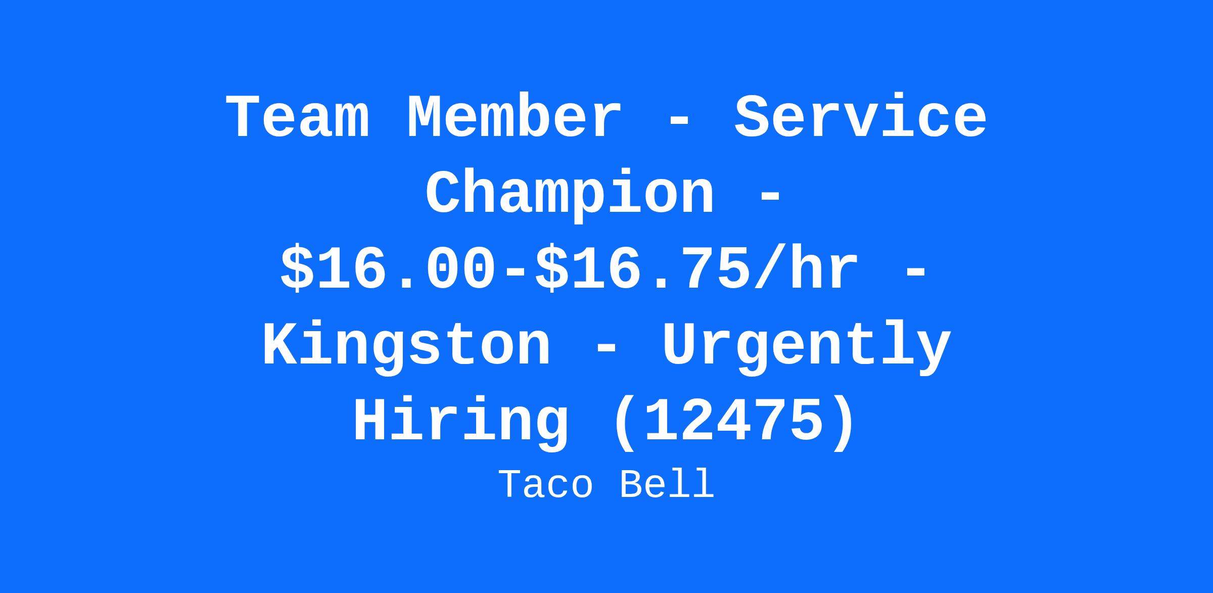 Team Member - Service Champion - $16.00-$16.75/hr - Kingston - Urgently Hiring (12475)
