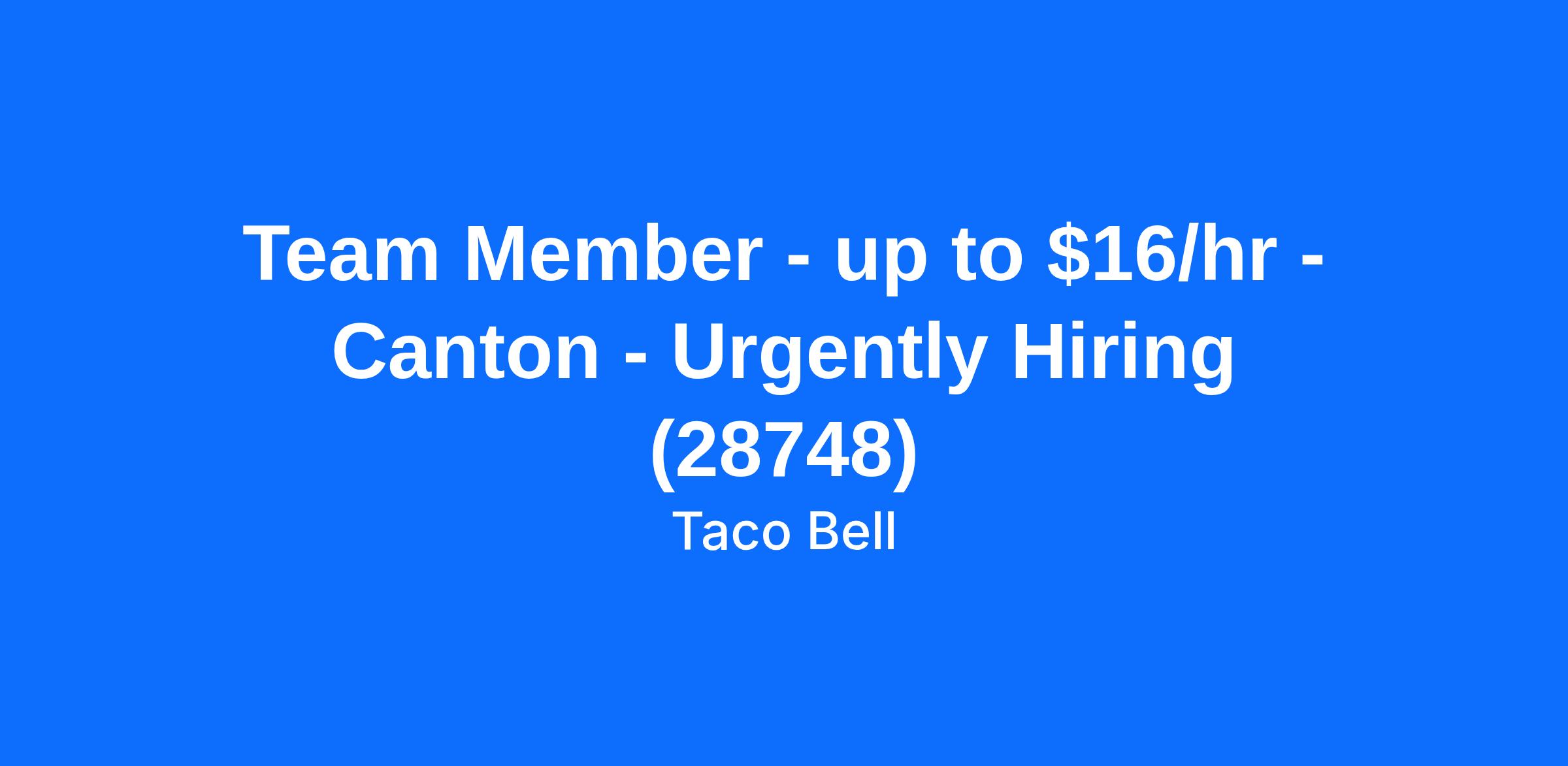 Team Member - up to $16/hr - Canton - Urgently Hiring (28748)