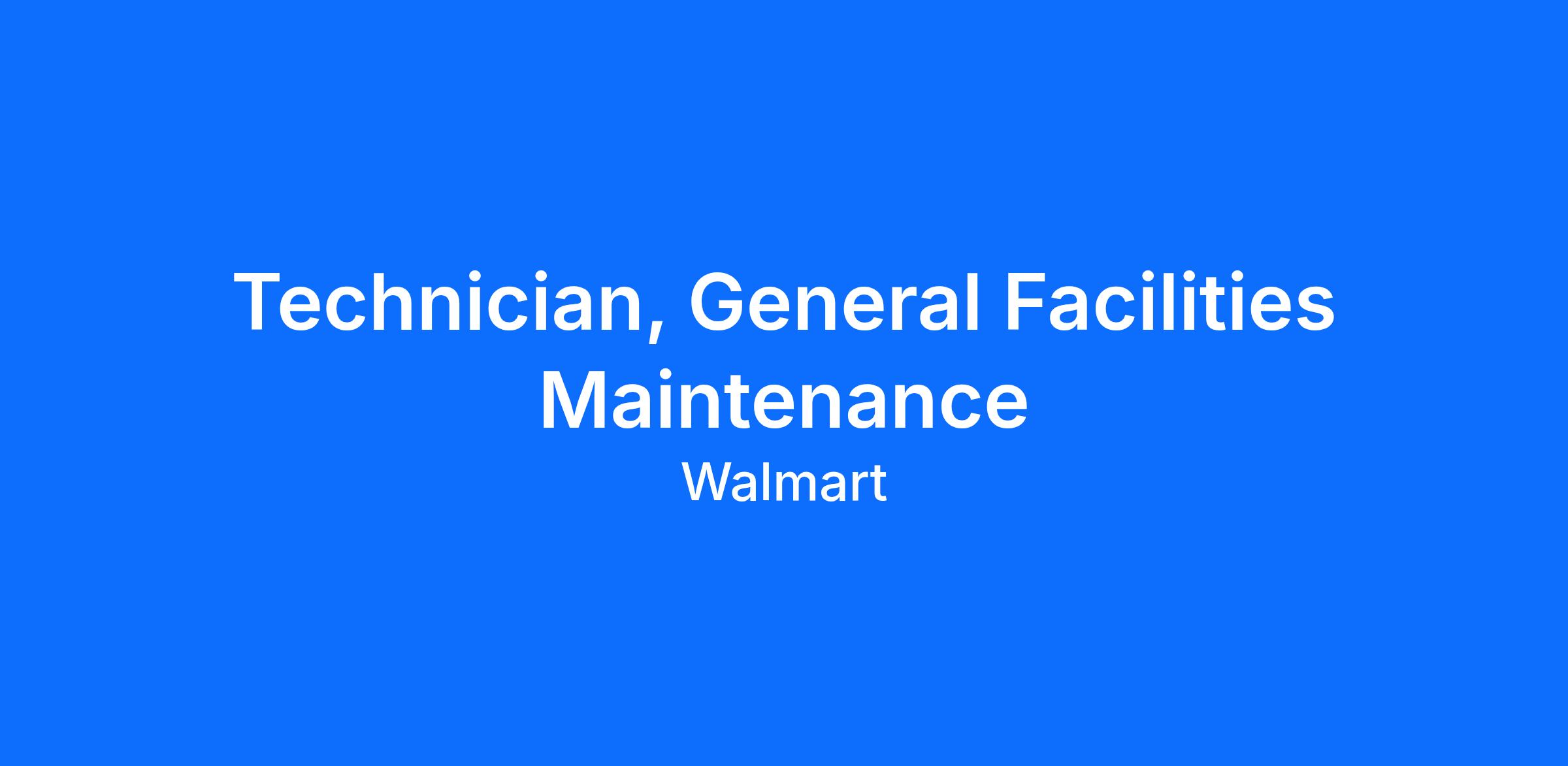 Are you searching for an exciting career opportunity within a dynamic team? Look no further! Walmart is expanding its workforce and looking for a General Facilities Maintenance Technician to join our local, and regional team. If you have experience in this field, we want you to bring your skills to our fast-paced and welcoming environment!