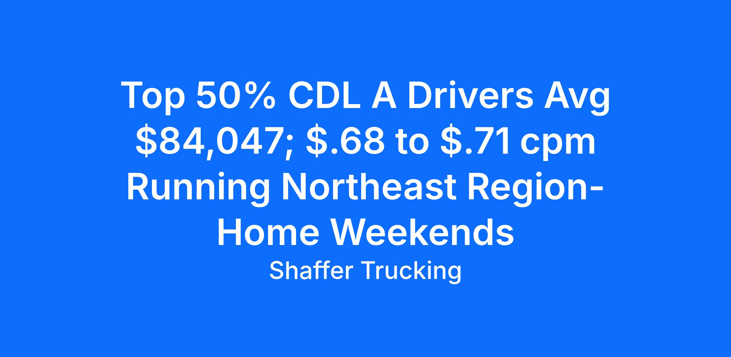 Top 50% CDL A Drivers Avg $84,047; $.68 to $.71 cpm Running Northeast Region-Home Weekends
