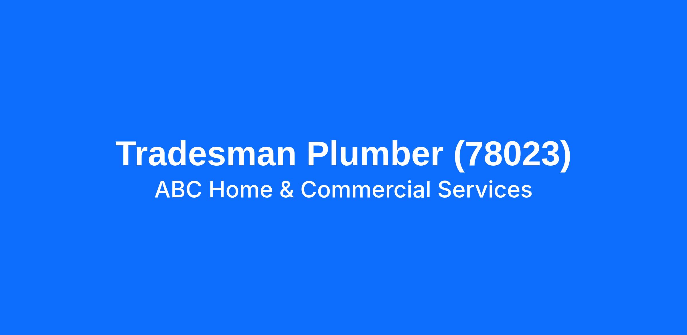 Only seeking applicants local to the San Antonio area - residing within that radius would be necessary.To apply for this position, you must have a minimum of 2 years of Residential plumbing experience.Are you ready to embark on an exciting career with ABC Home & Commercial Services? We're not just a company; we're a close-knit community dedicated to service and excellence. With 75 years of history and a team of over 1,000+ employees serving a growing network of cities in Central and South Texas, we take pride in being a family-owned business dedicated to fulfilling commitments, serving others, and supporting families. Come be a part of something special - apply now!