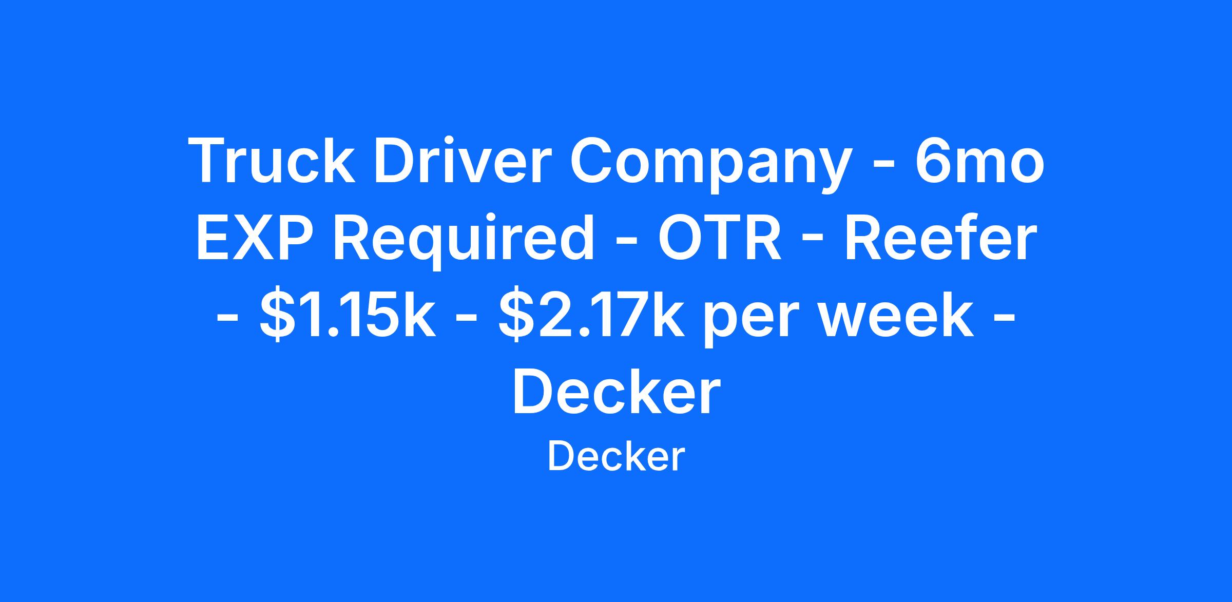 Truck Driver Company - 6mo EXP Required - OTR - Reefer - $1.15k - $2.17k per week - Decker